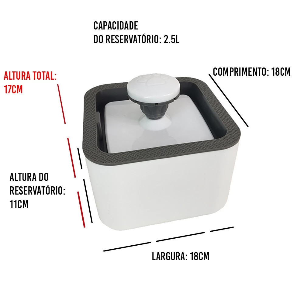 Fonte de Água Pet com Filtro - 2,5L para Gatos e Cachorros