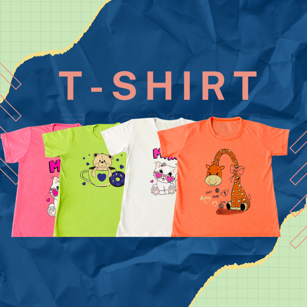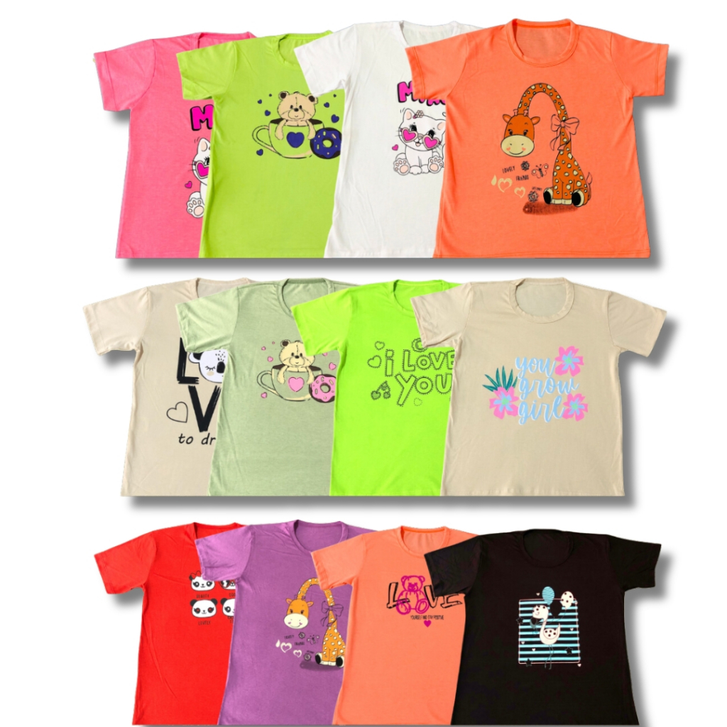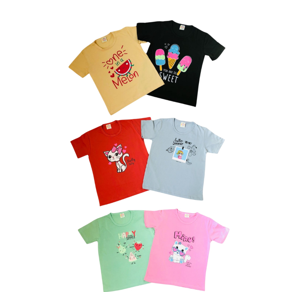 Kit 5 camisetas femininas de algodão infantil - Blusas de menina com estampas variadas