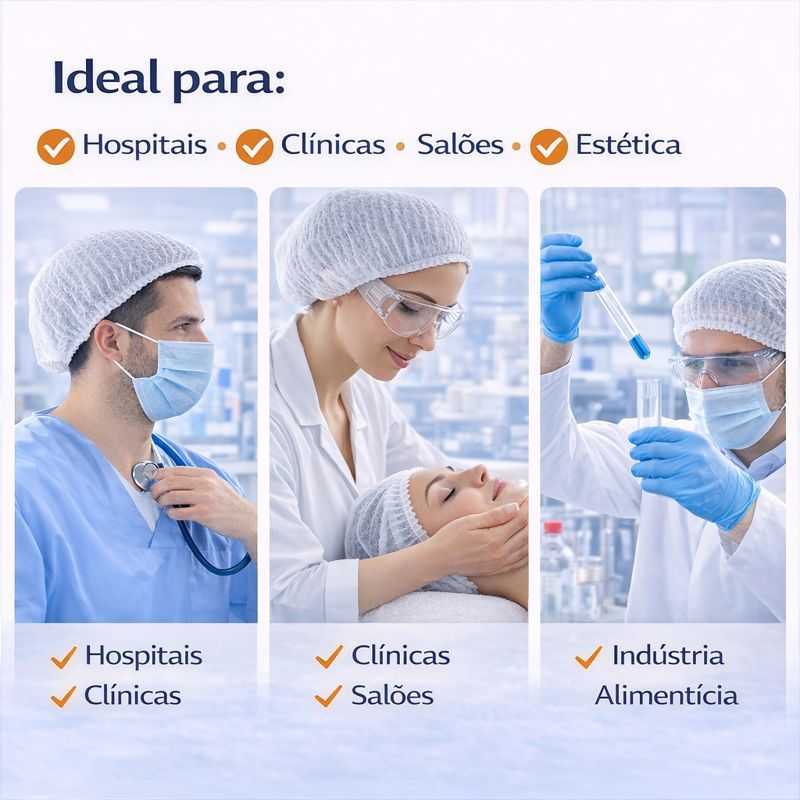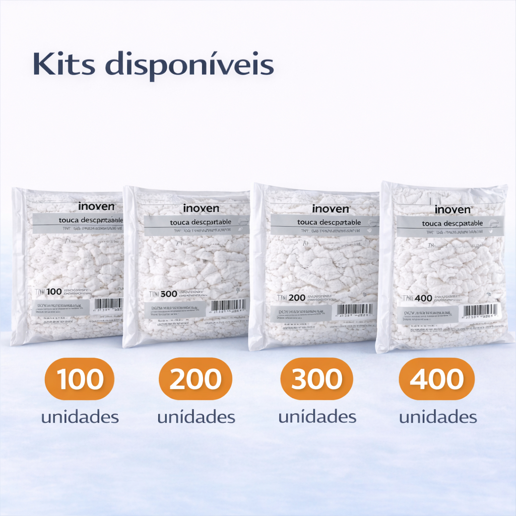 Touca TNT Branca Sanfonada Cirúrgica Descartável Com Elástico Uso Profissional Kits 100 a 400 Unidades