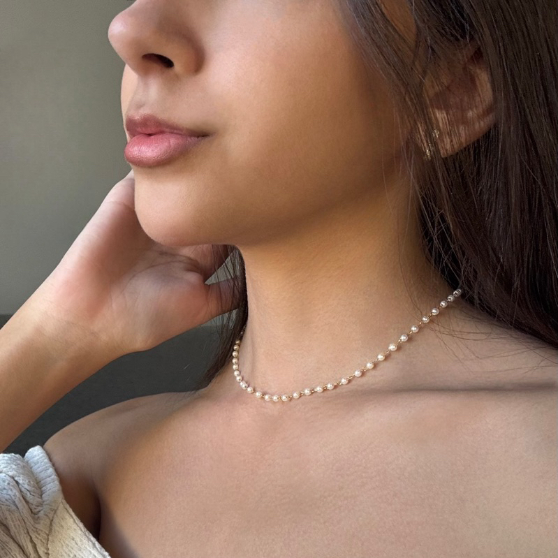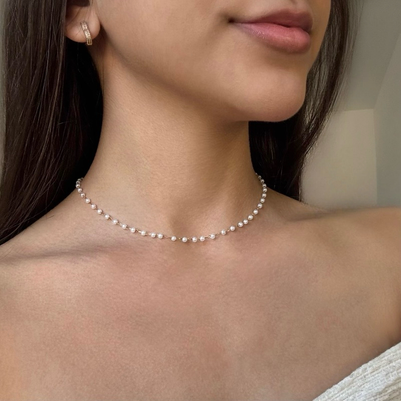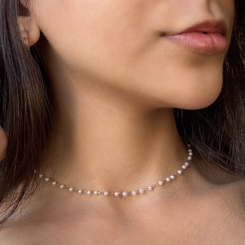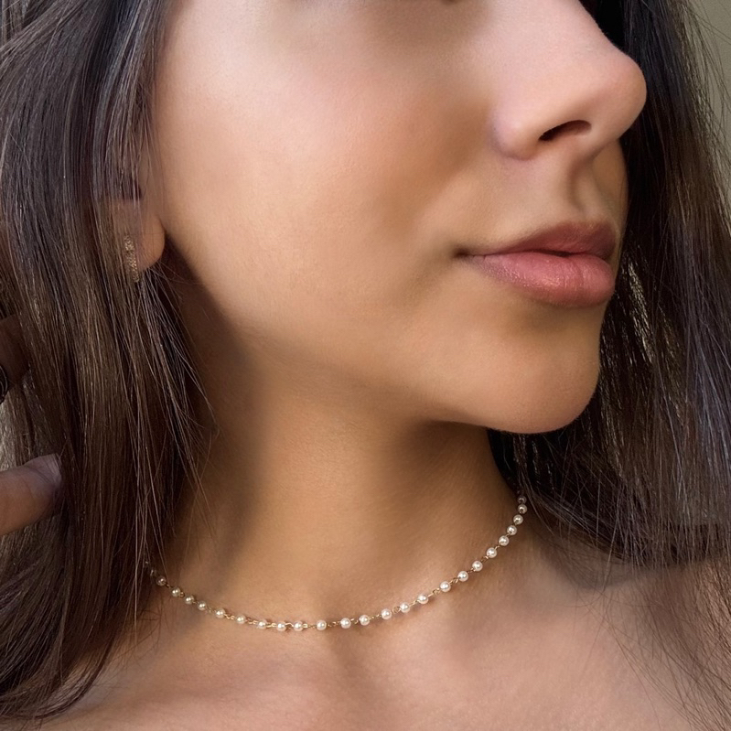 Colar de Pérolas Dourado Choker Feminino Elegante Aço Inoxidável Hipoalergênico Delicado Não Escurece Aço Inox