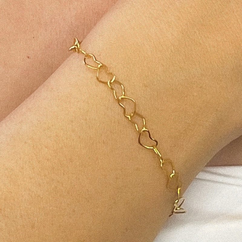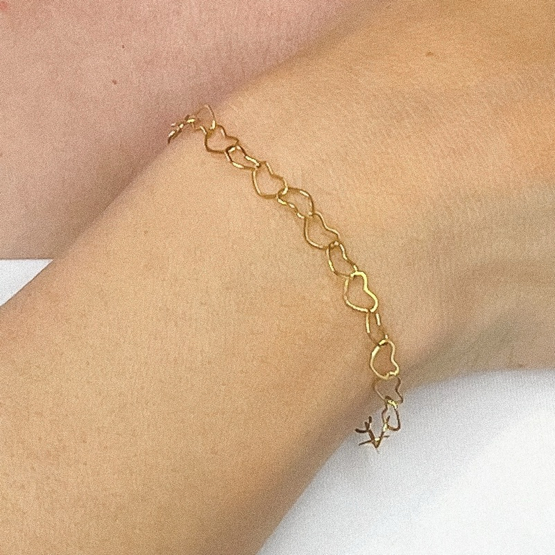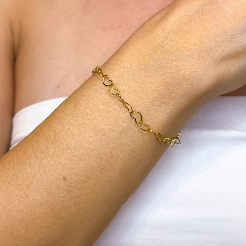 Pulseira Coração Dourado Aço inoxidável não escurece Hipoalergênica Corrente minimalista feminino