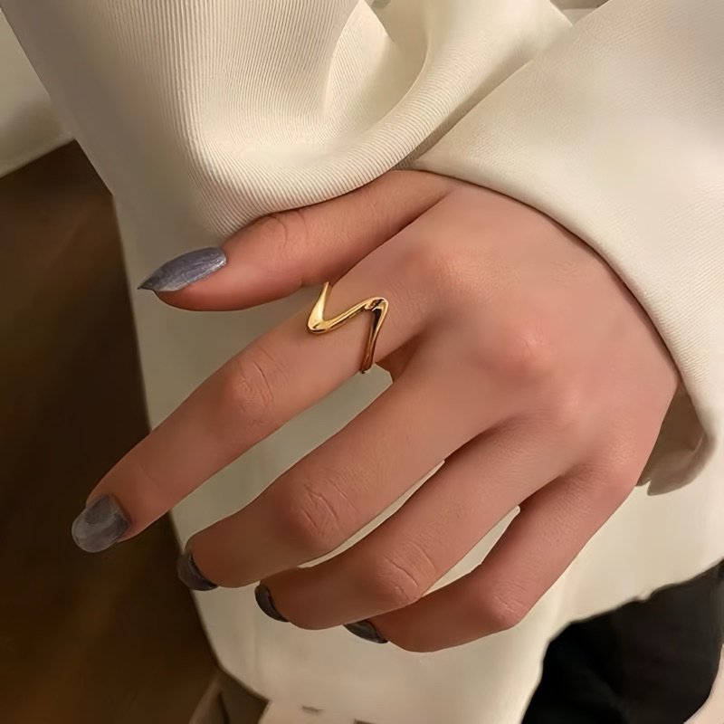 Anel Aço Inox regulável Anel Geométrico Anel Para Mulheres Anel Elegante Anel Festa Anel Aro ondulado Anel dourado