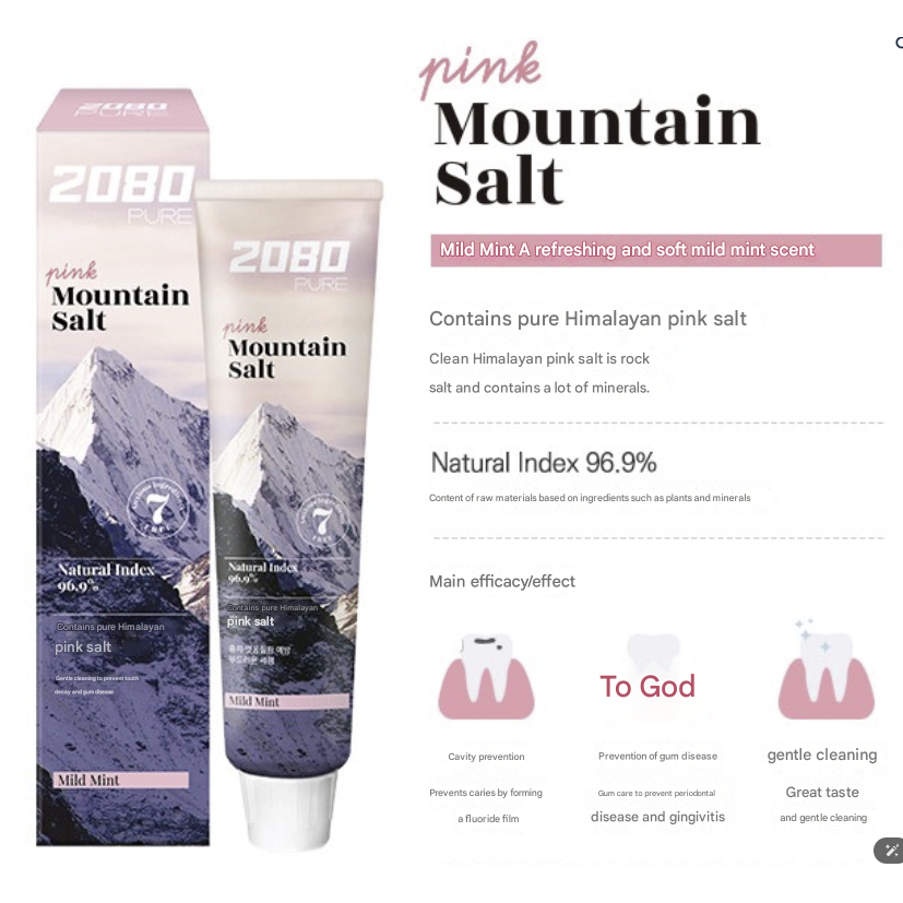 2080 Pasta De Dente Pura Branca Fresca E Rosa Sabor Suave Menta , Himalaia De Montanha , 150g , 6ea