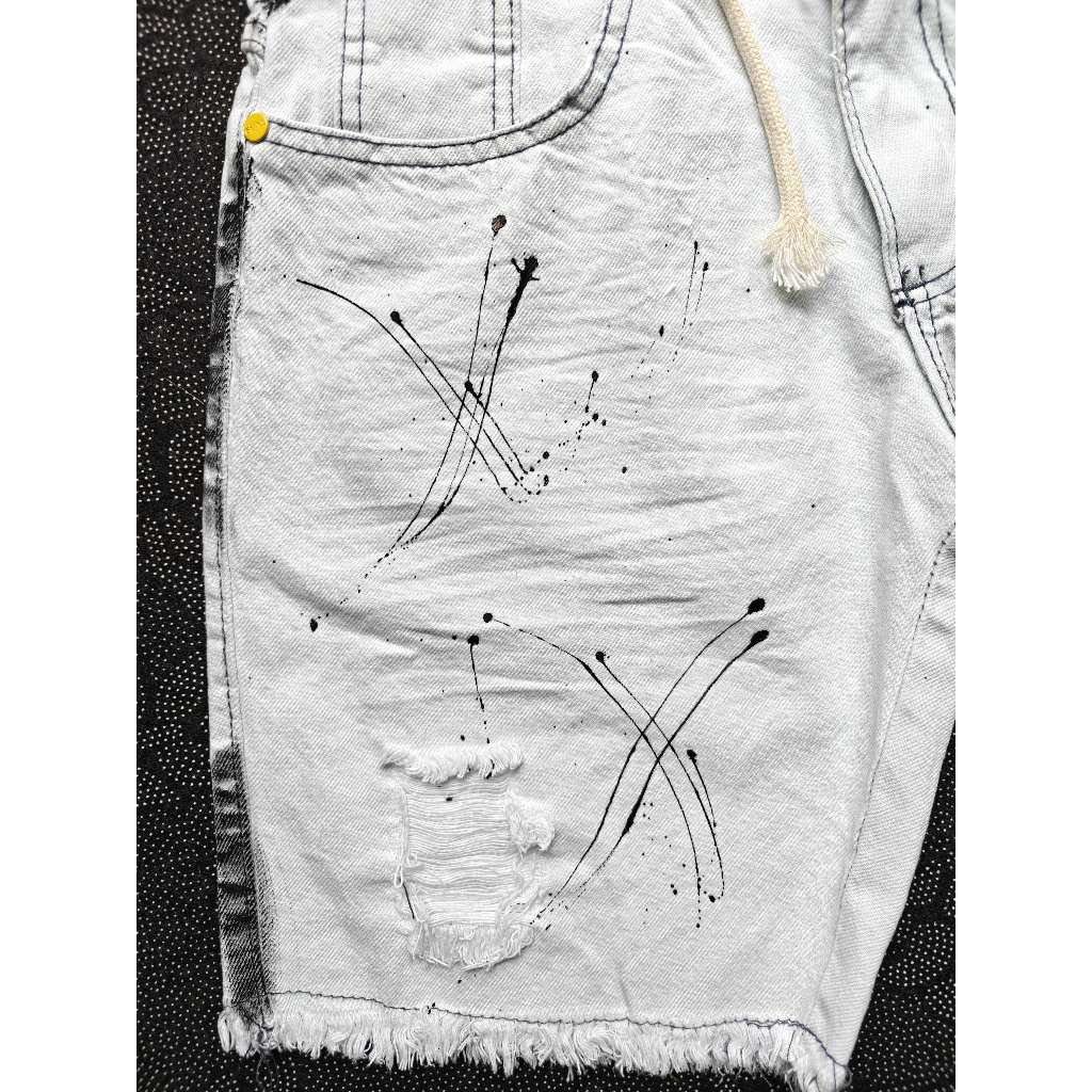(Novos modelo)Bermuda shorts jogador rasgados curta curtinha corda cinto branco com pintura vinco