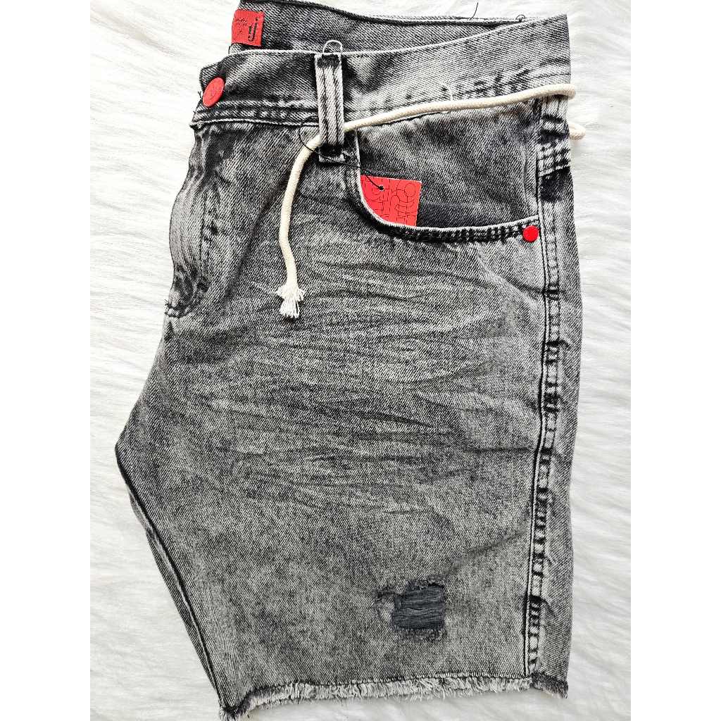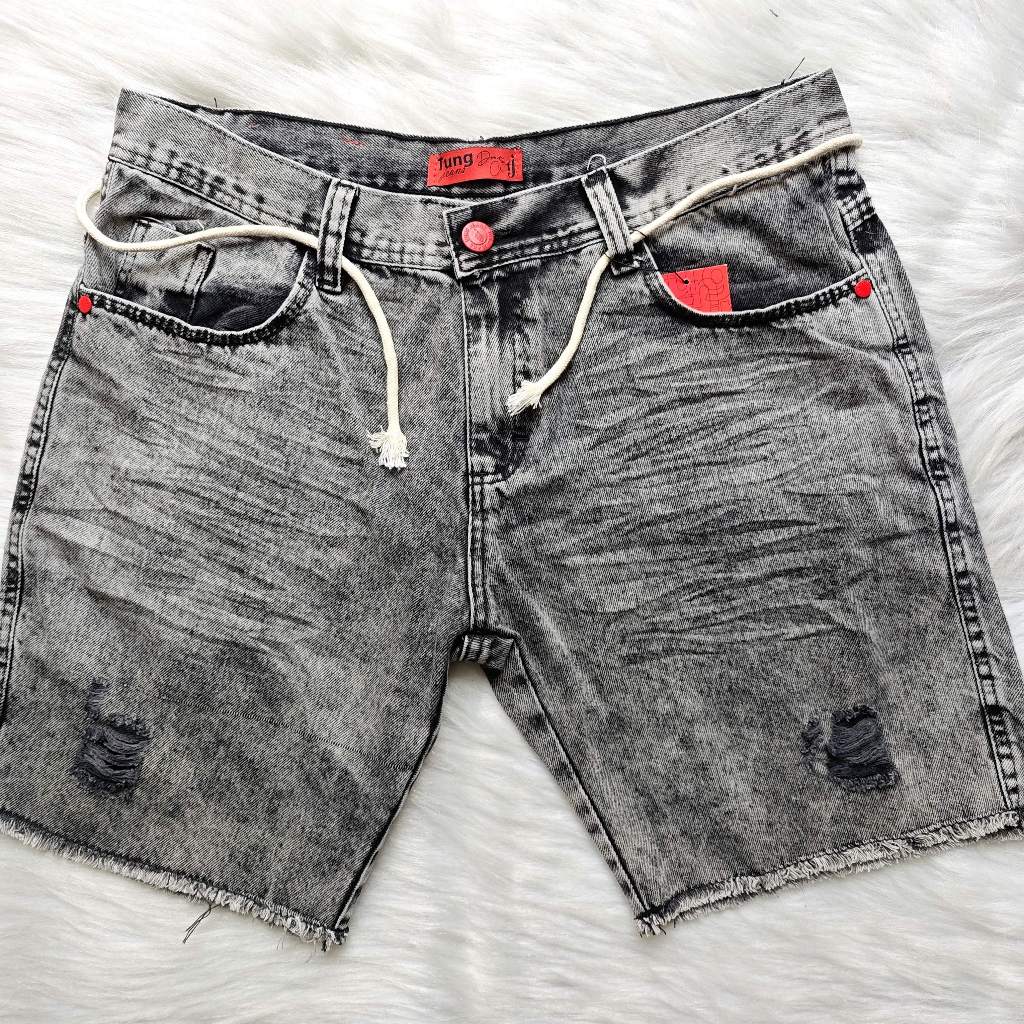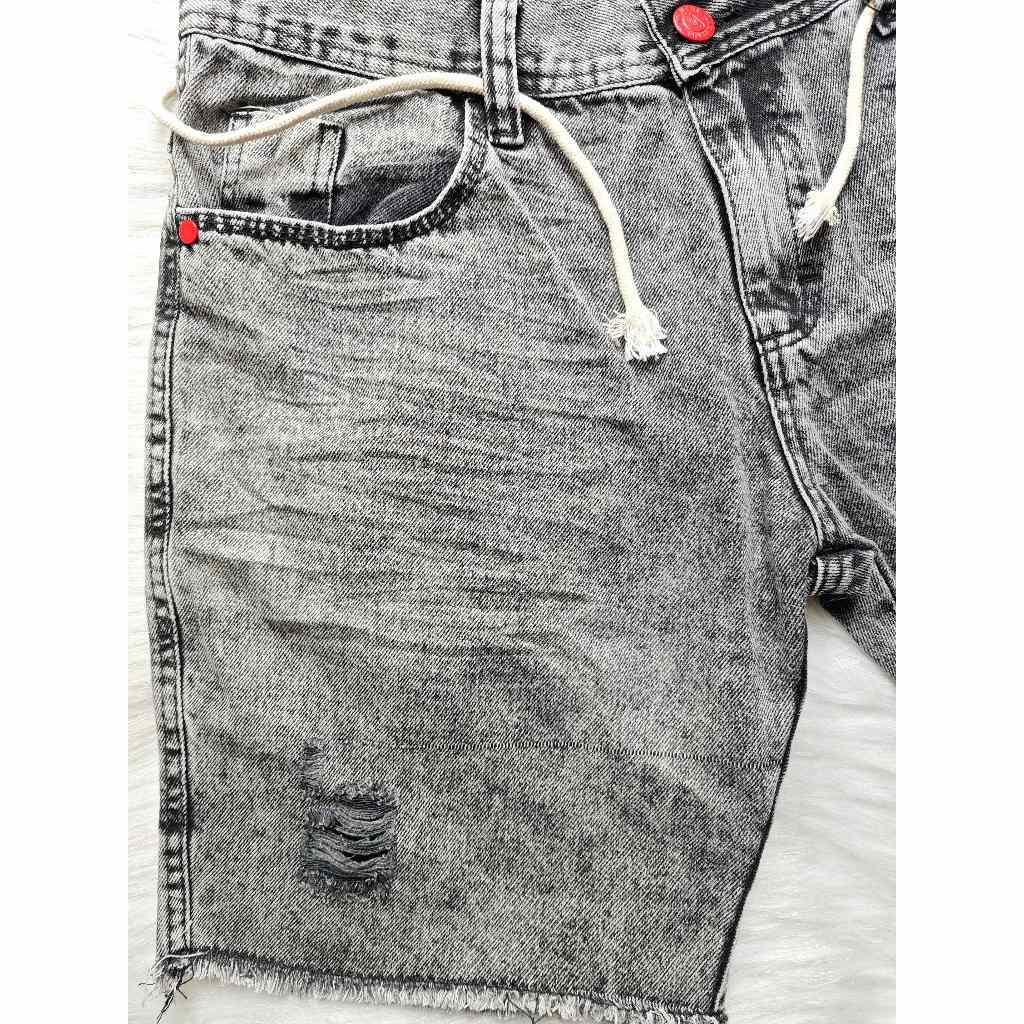 Bermuda jeans masculino short jogador rasgados com vinco cinza casual, macio, estiloso