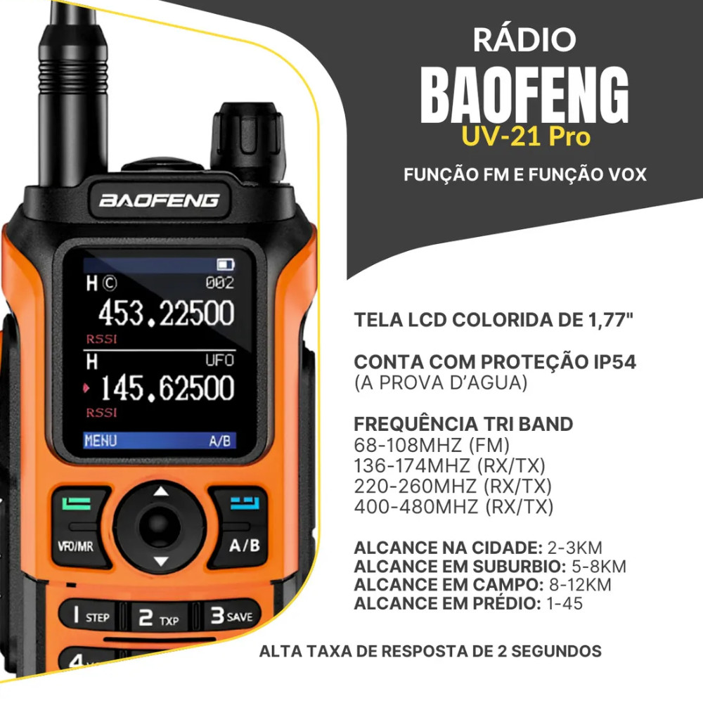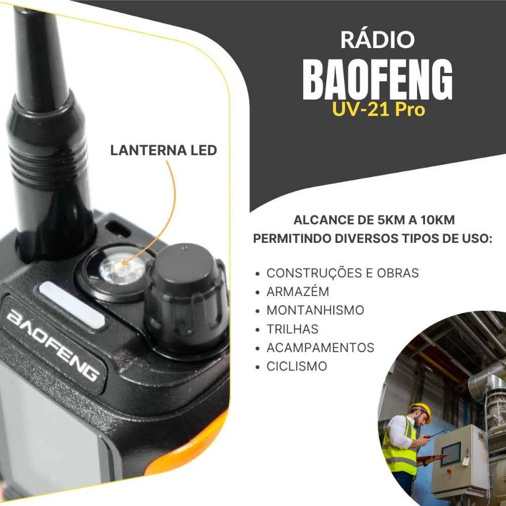 Potente Rádio Comunicador Baofeng UV-21 PRO com Carregador de Walkie-Talkie