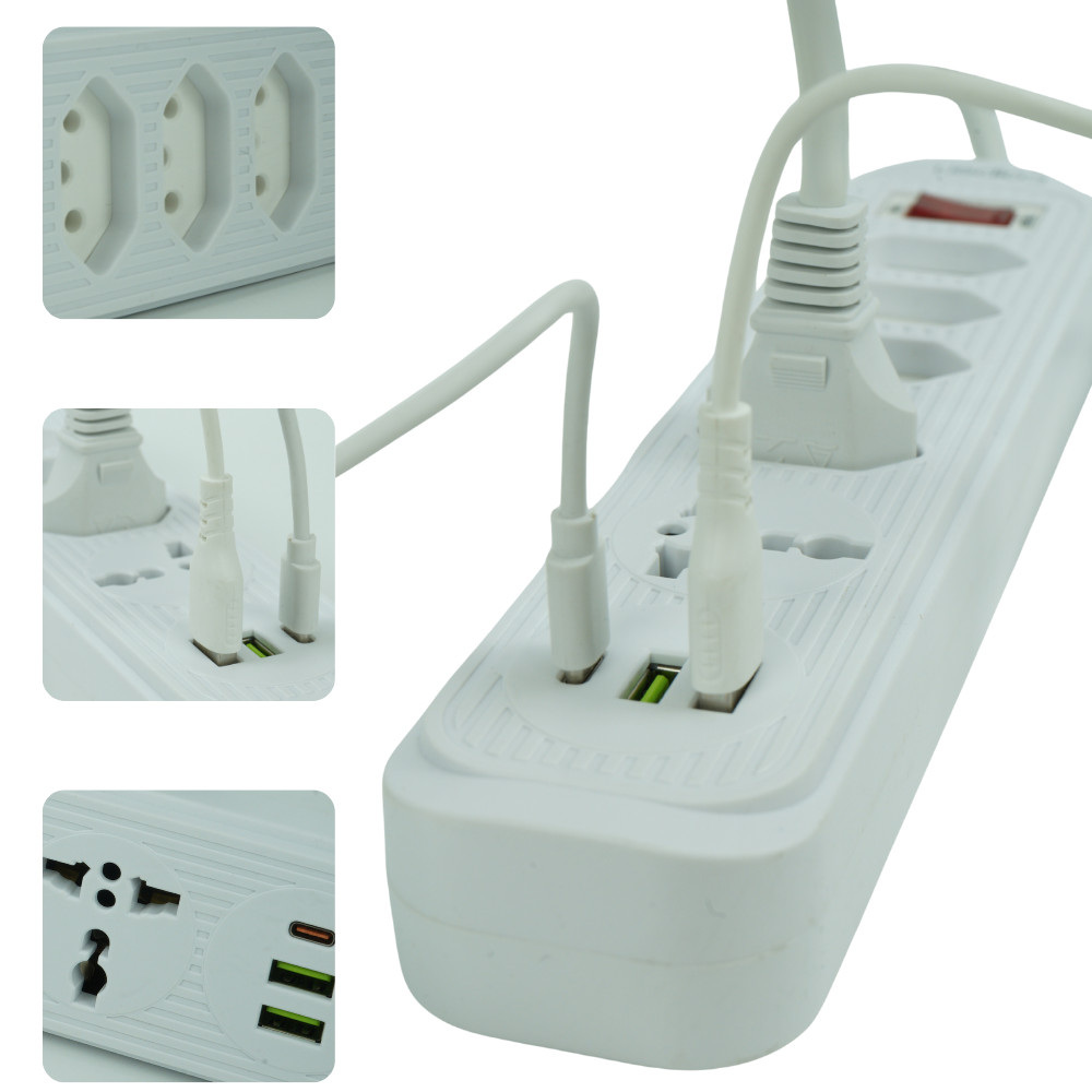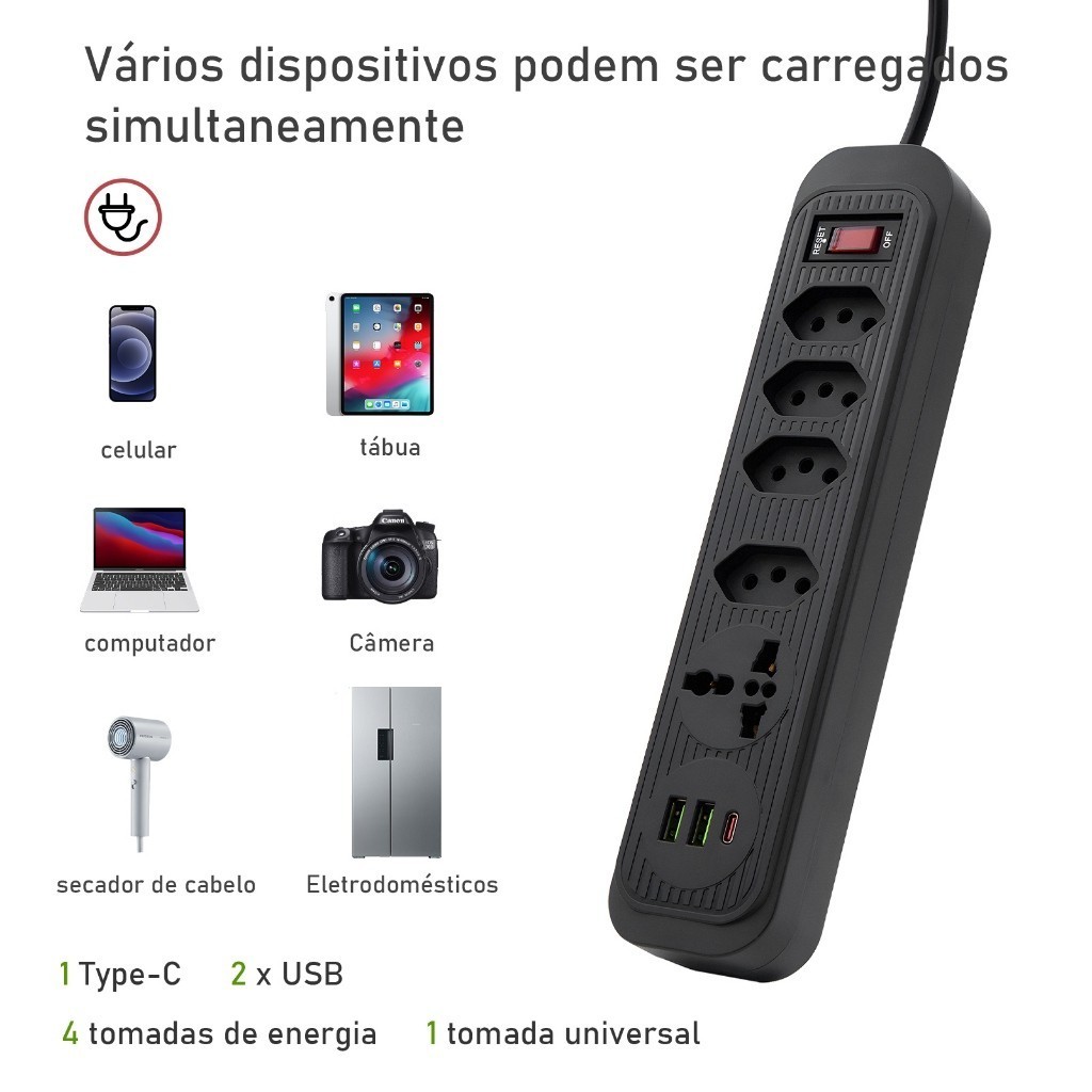 Extensão COIBEU Filtro de Linha 2m 10A Bivolt com 4 Tomadas, 1 Universal, 2 USB, 1 Tipo-C, 2500W