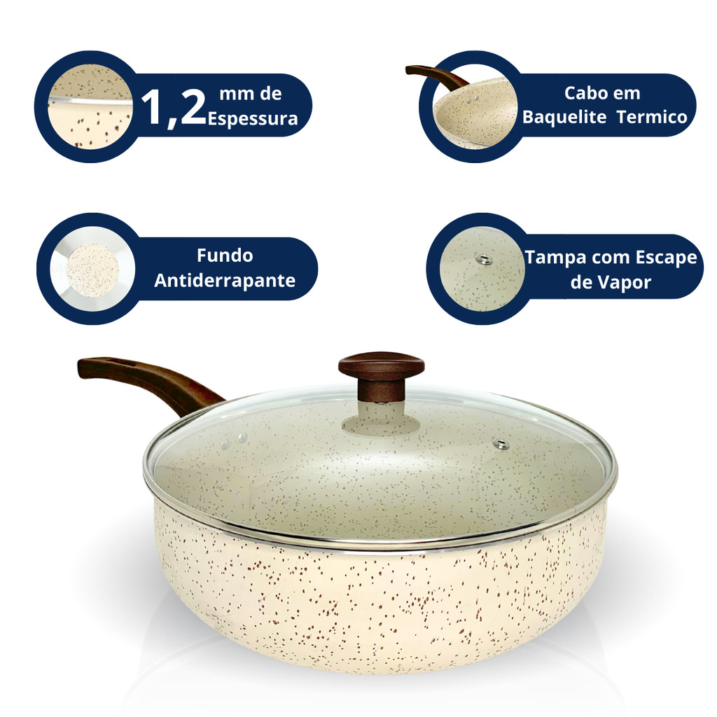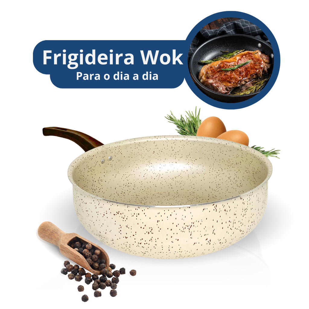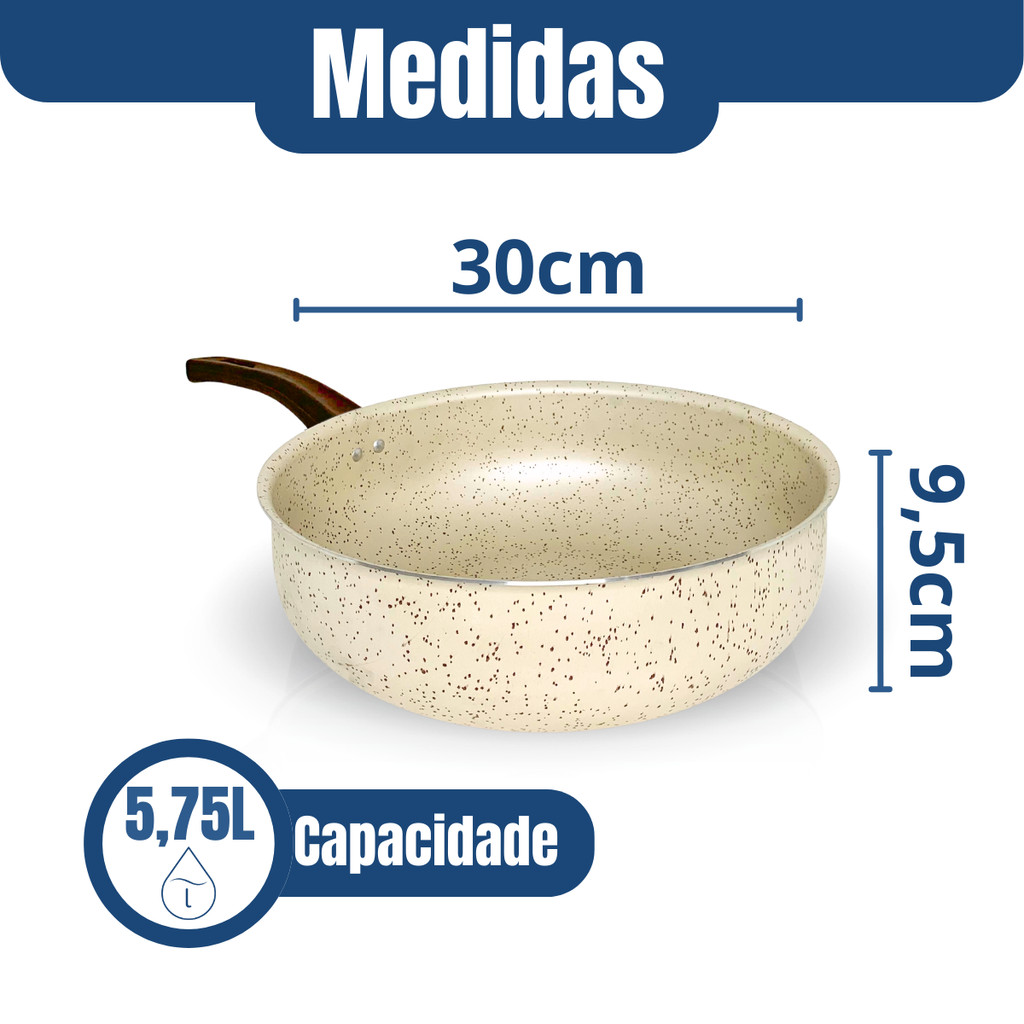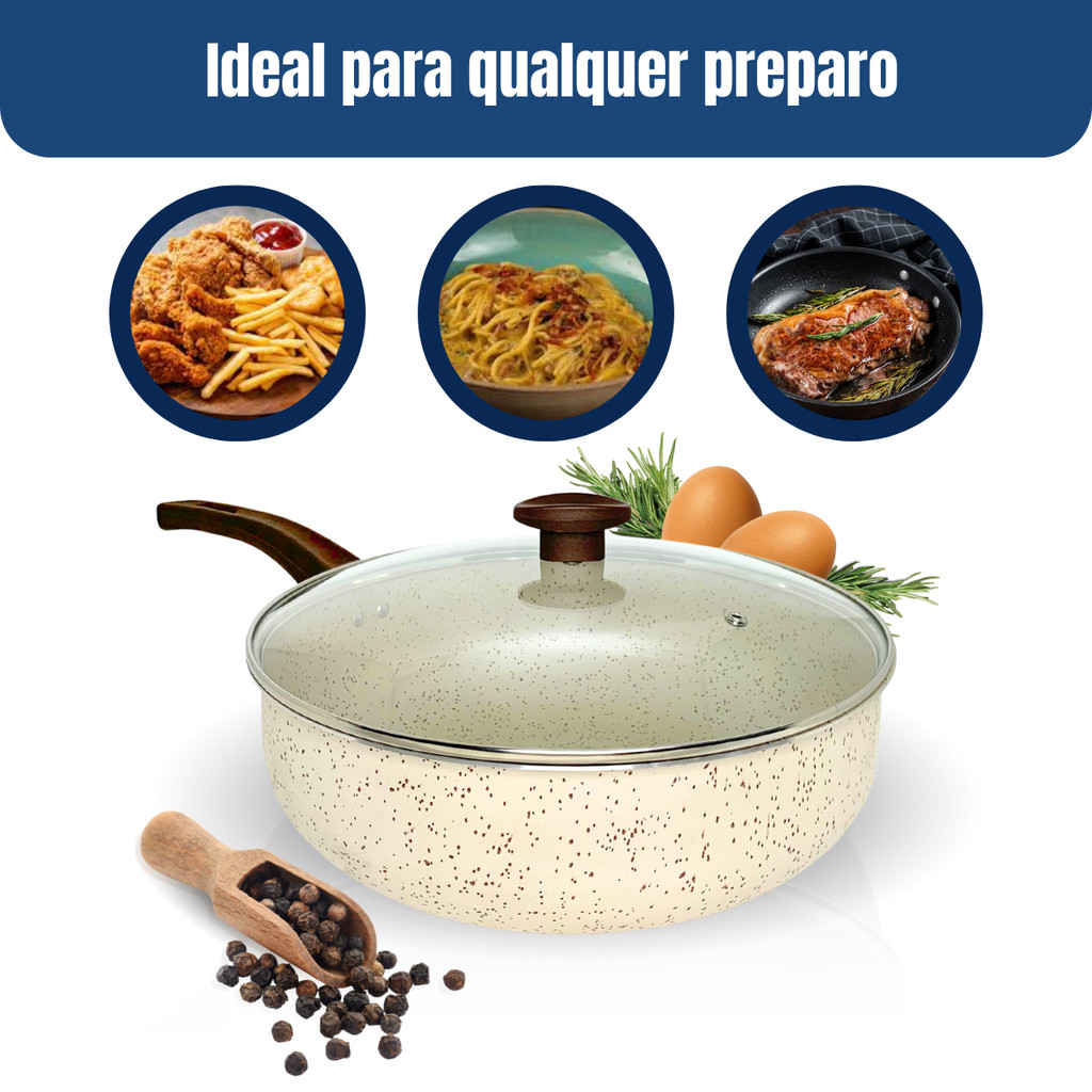 Frigideira Wok 30cm Antiaderente Com Tampa De Vidro Grande Teflon Profissional Reforçada Slim