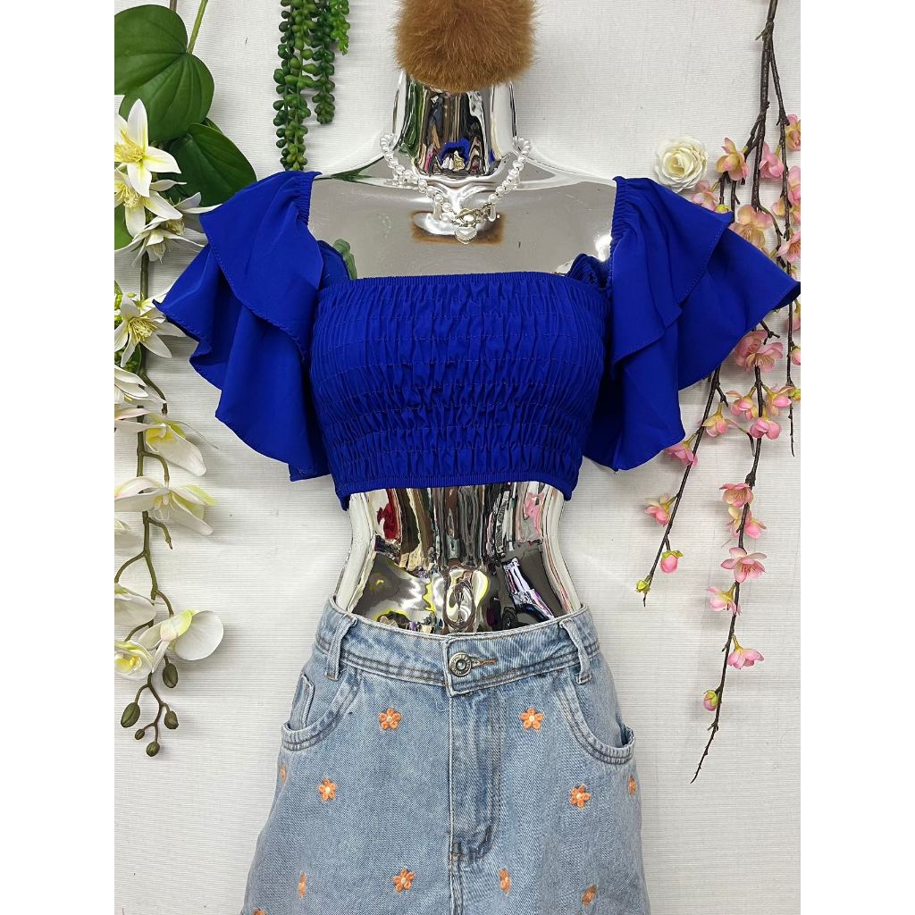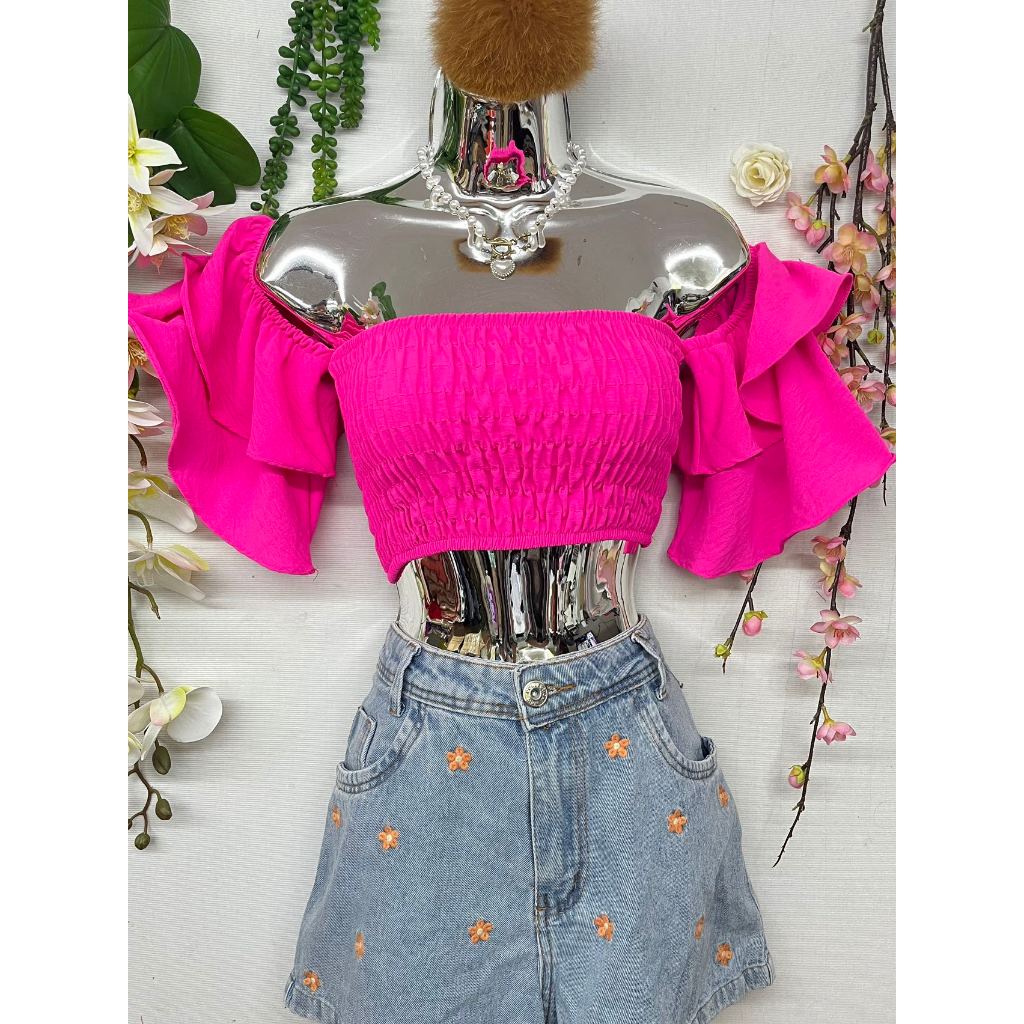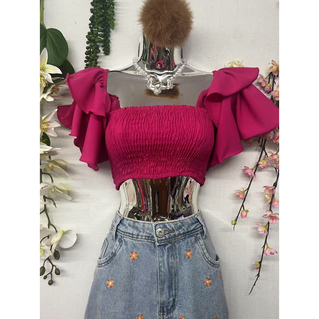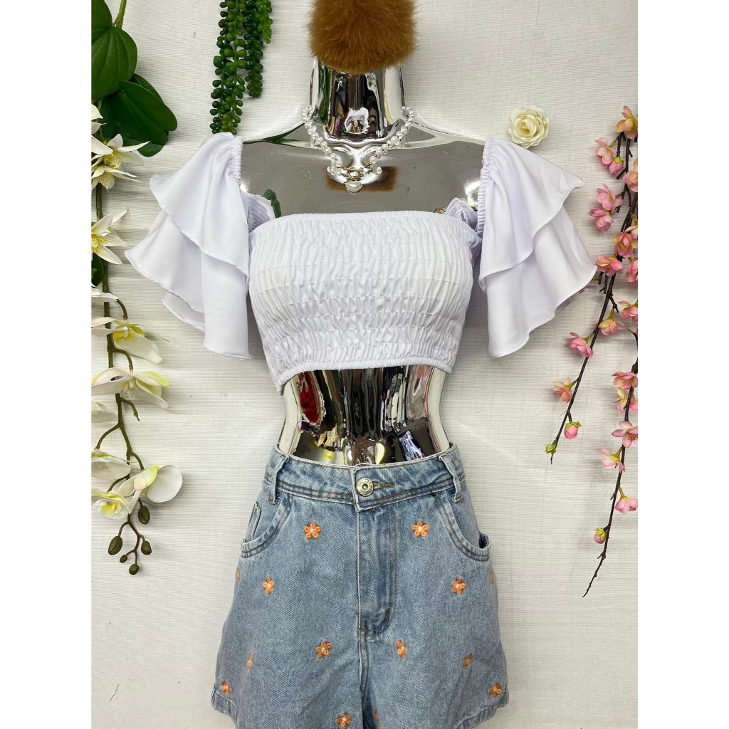 B076 Mangas sino curtas elásticas no peito