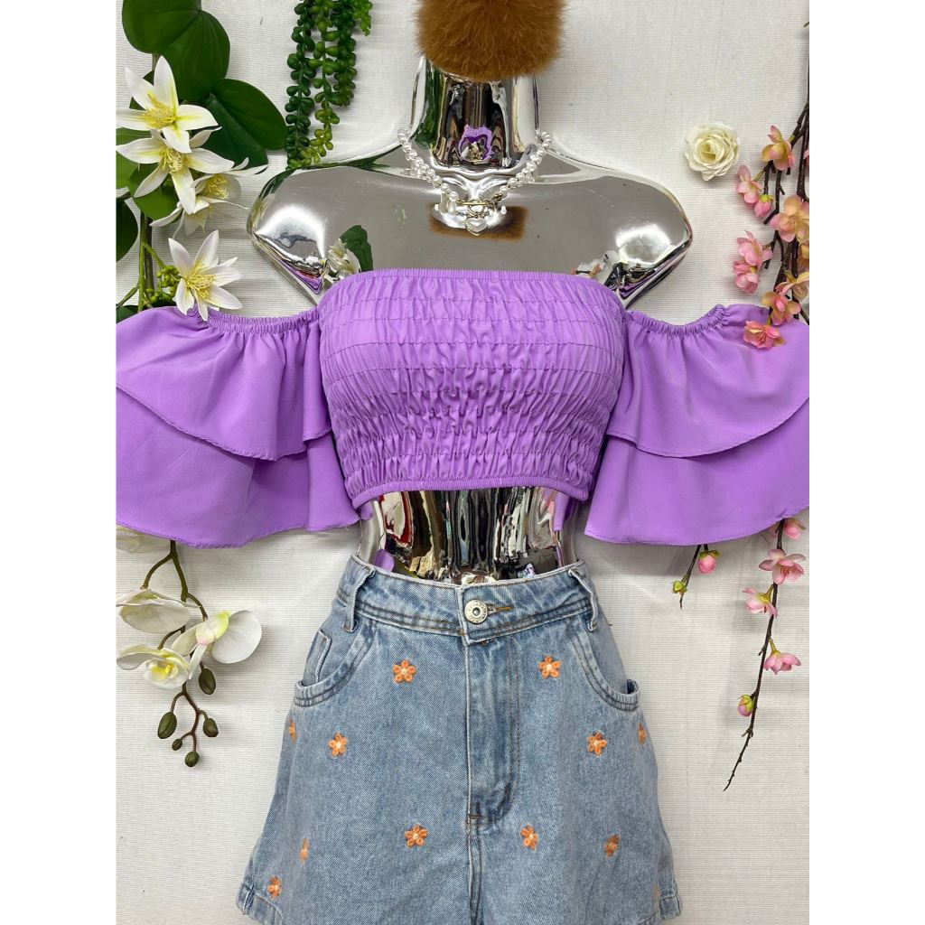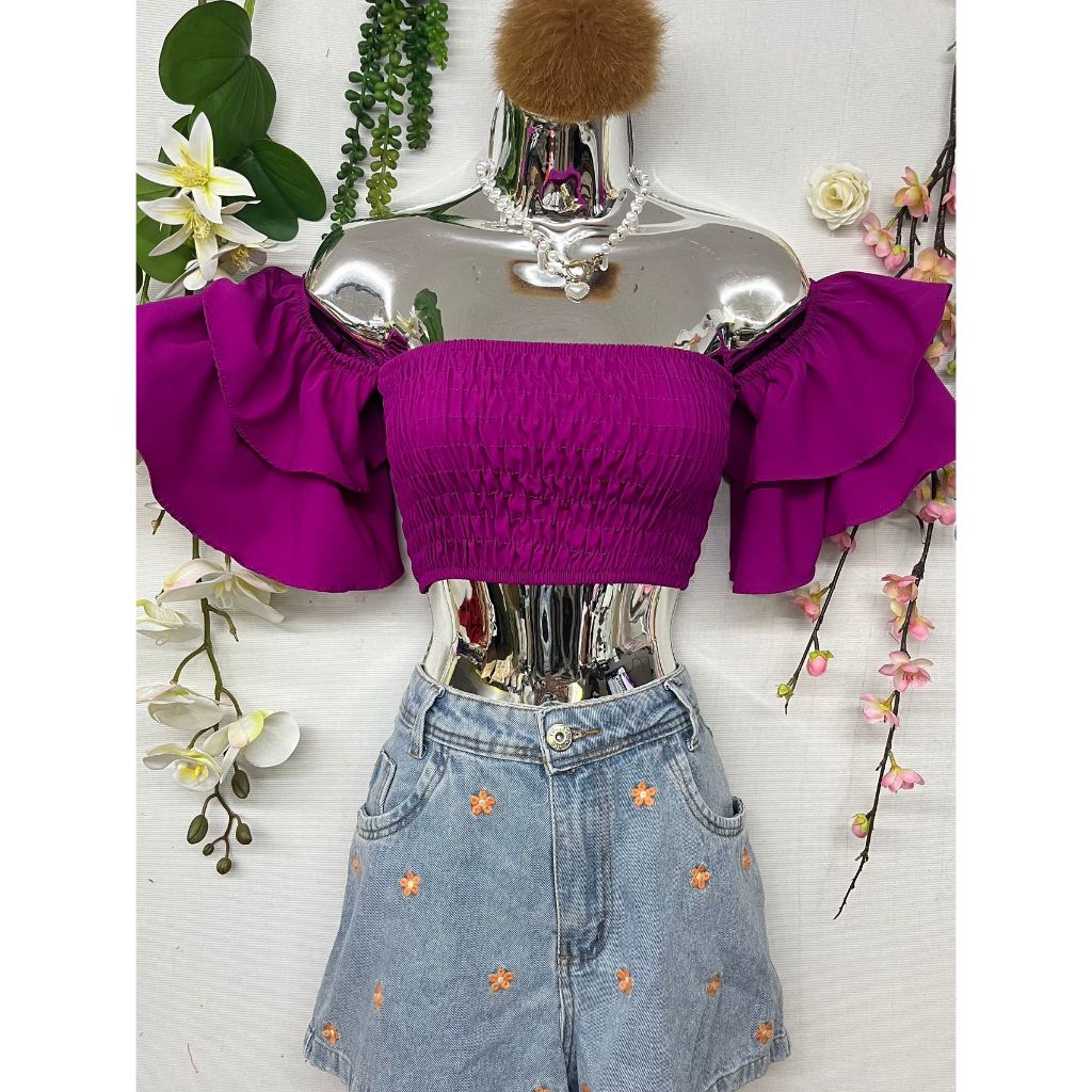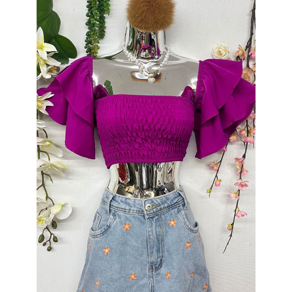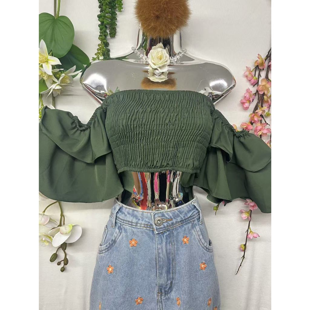 B076 Mangas sino curtas elásticas no peito