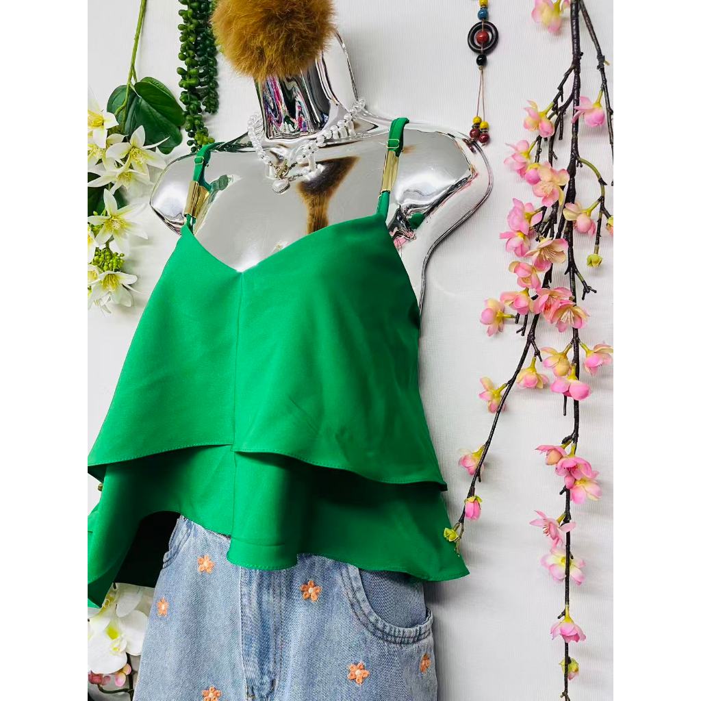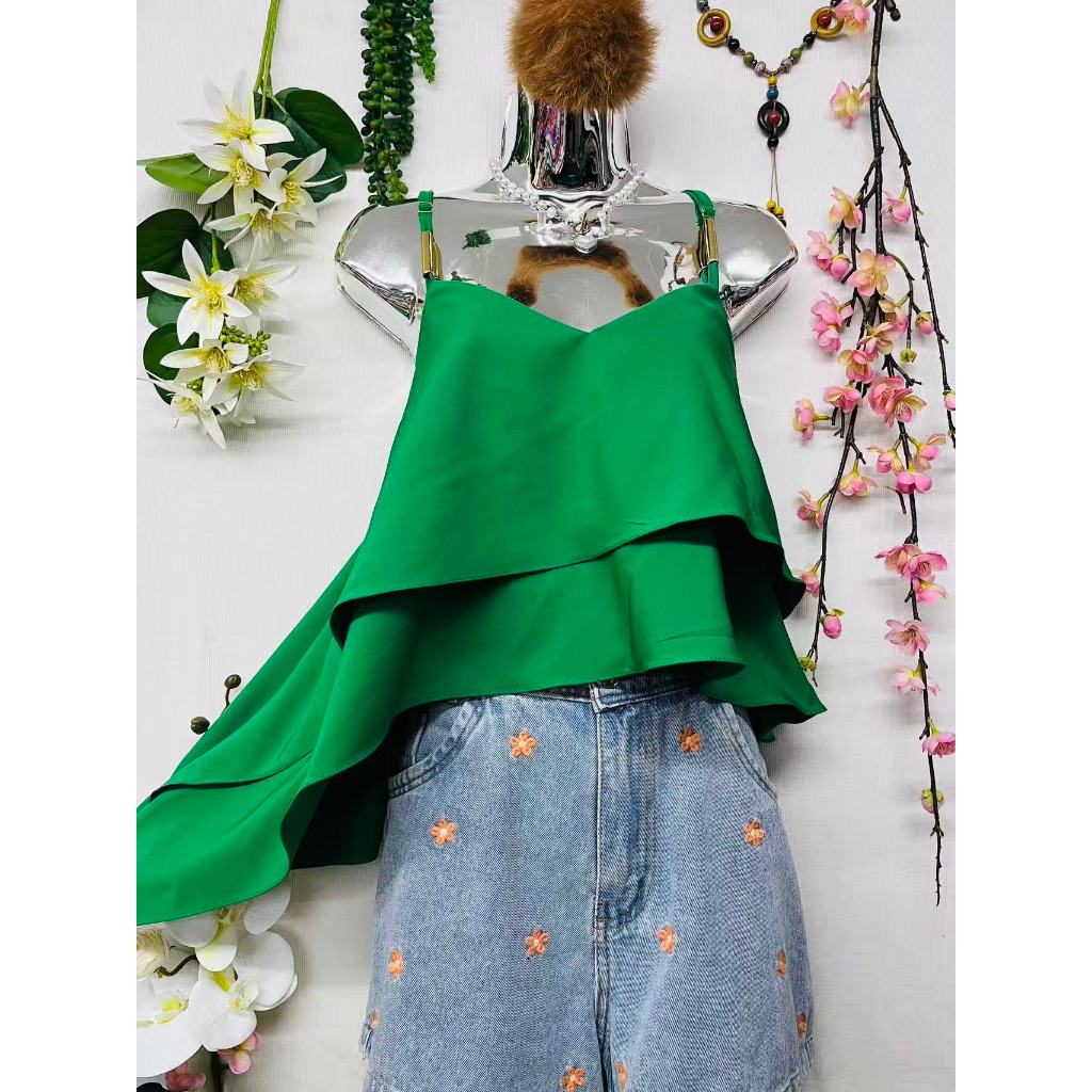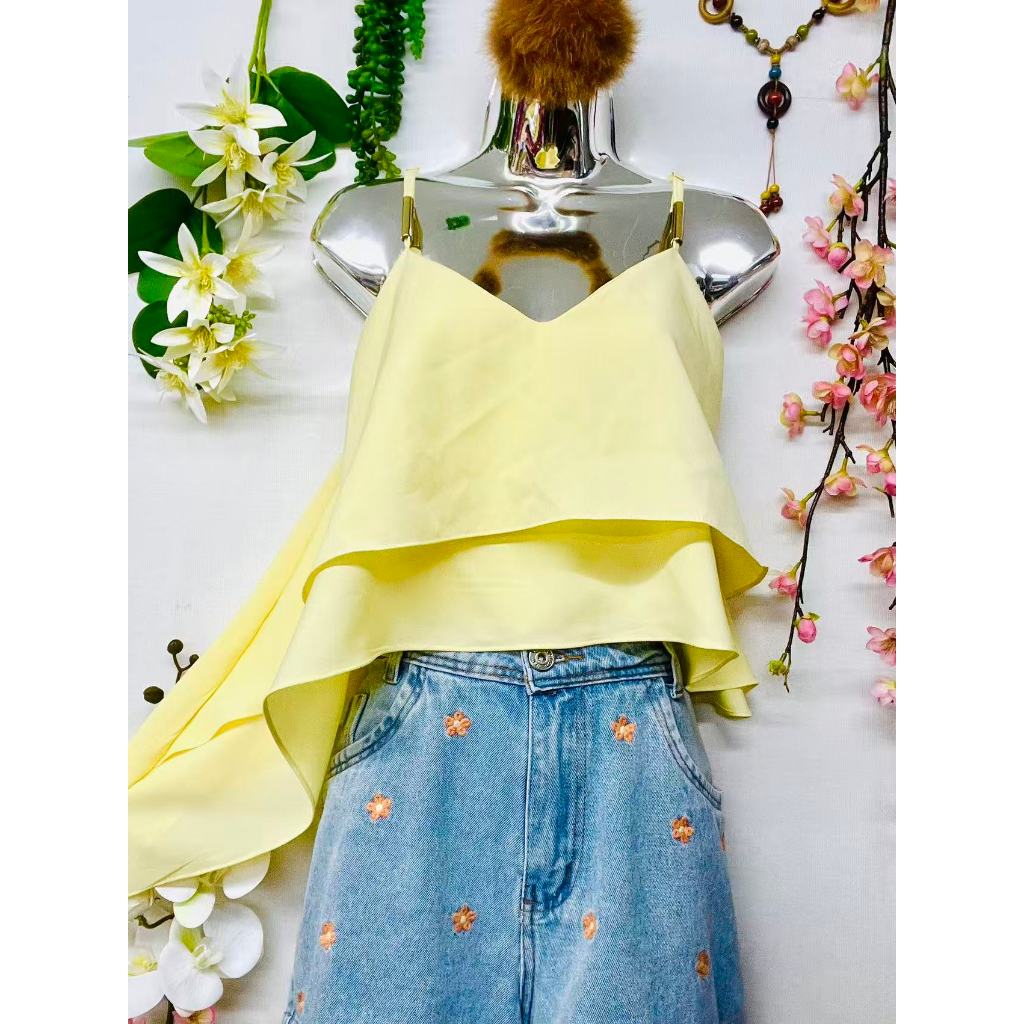T123 Top de alcinha com babado duplo, silhueta assimétrica super fashion!