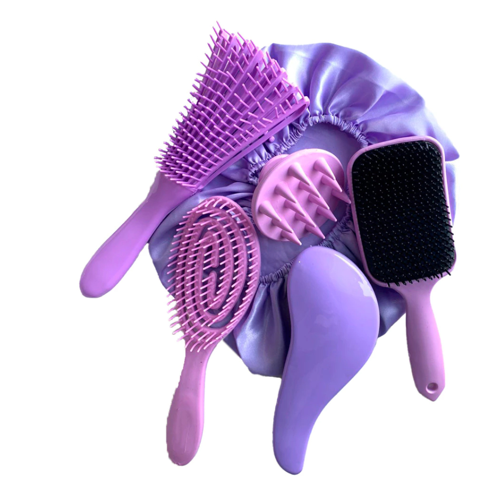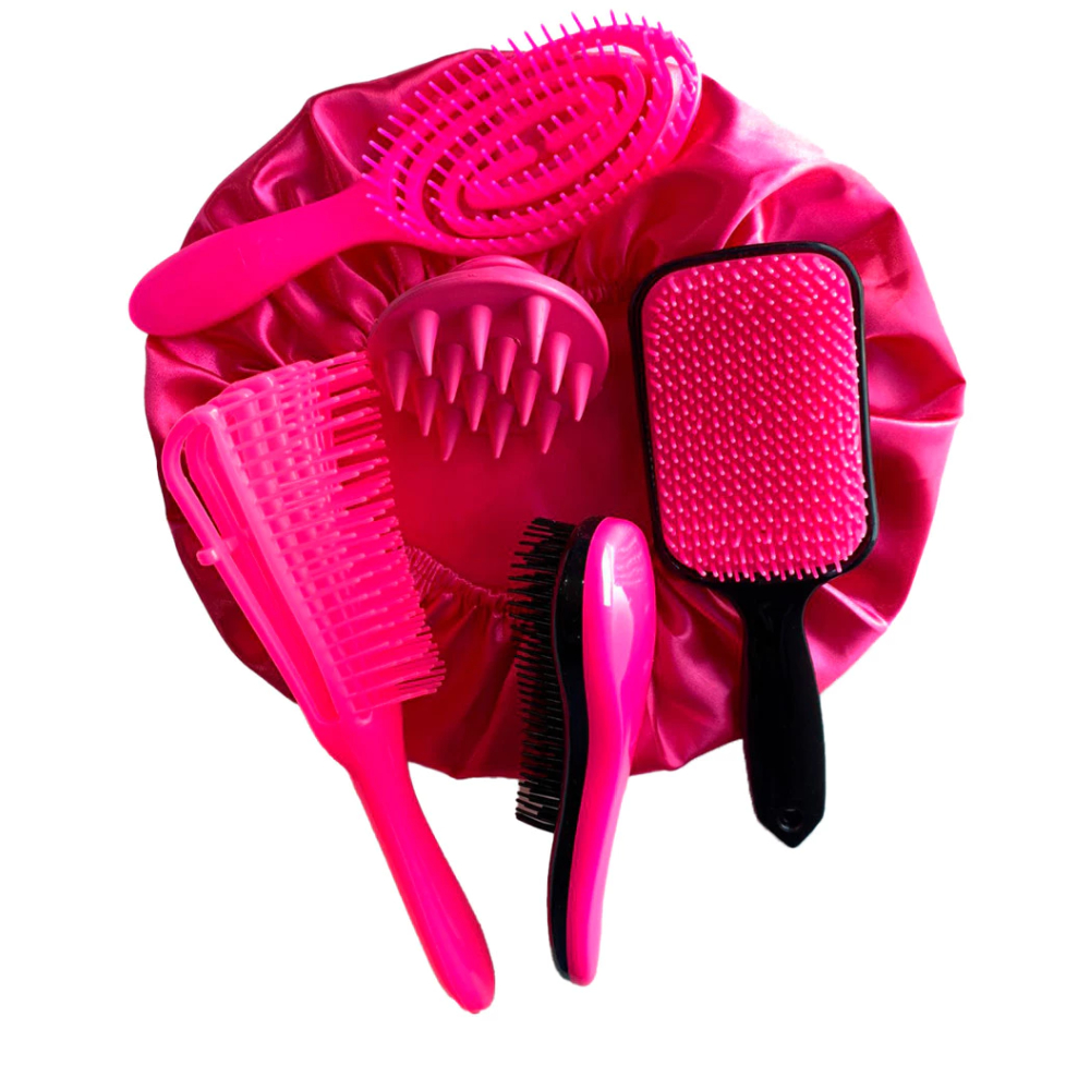 Kit 5 Escovas Cabelo Flex Raquete Fashion Polvo Escova Mágica Massageador Silicone Touca Veludo