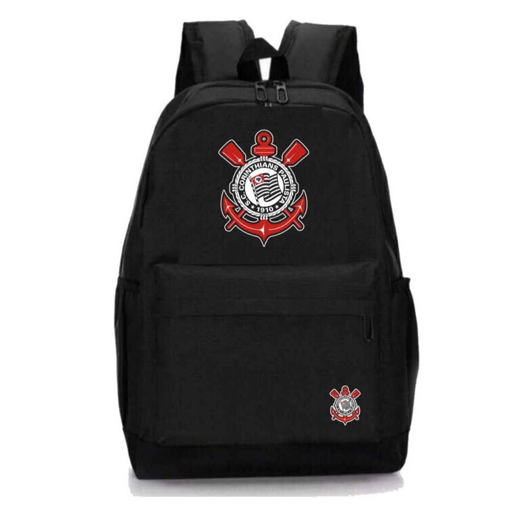 Mochila Times Futebol Reforçada Impermeável Com Bolso Lateral Universitária Escolar