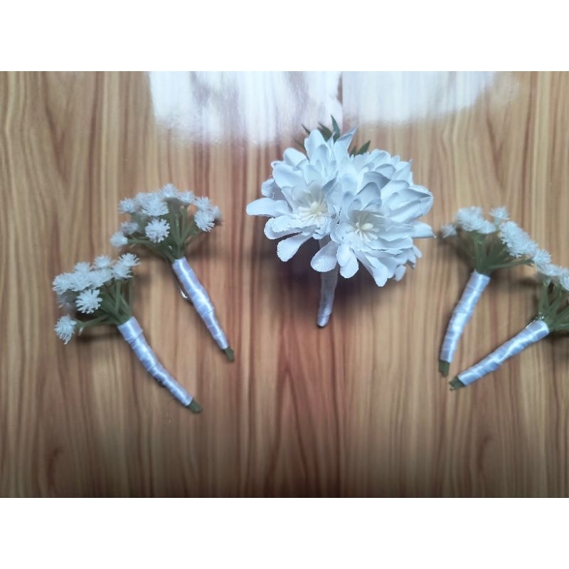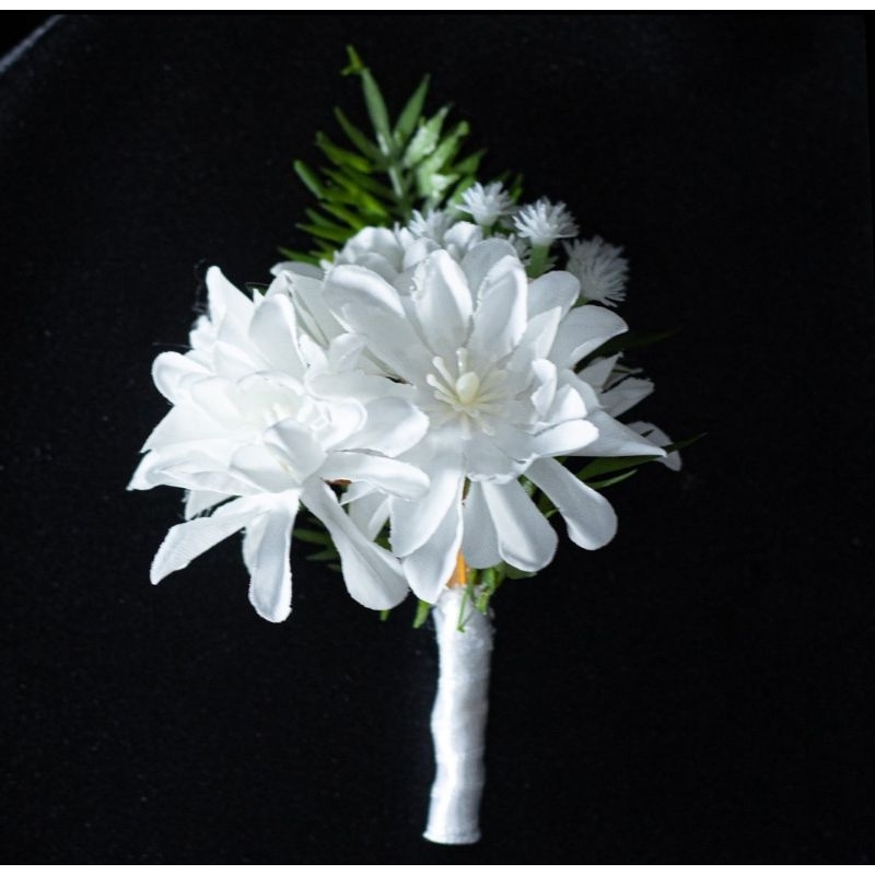 Lapela para Noivo e Padrinhos – Flor Branca Artesanal | Kit Casamento