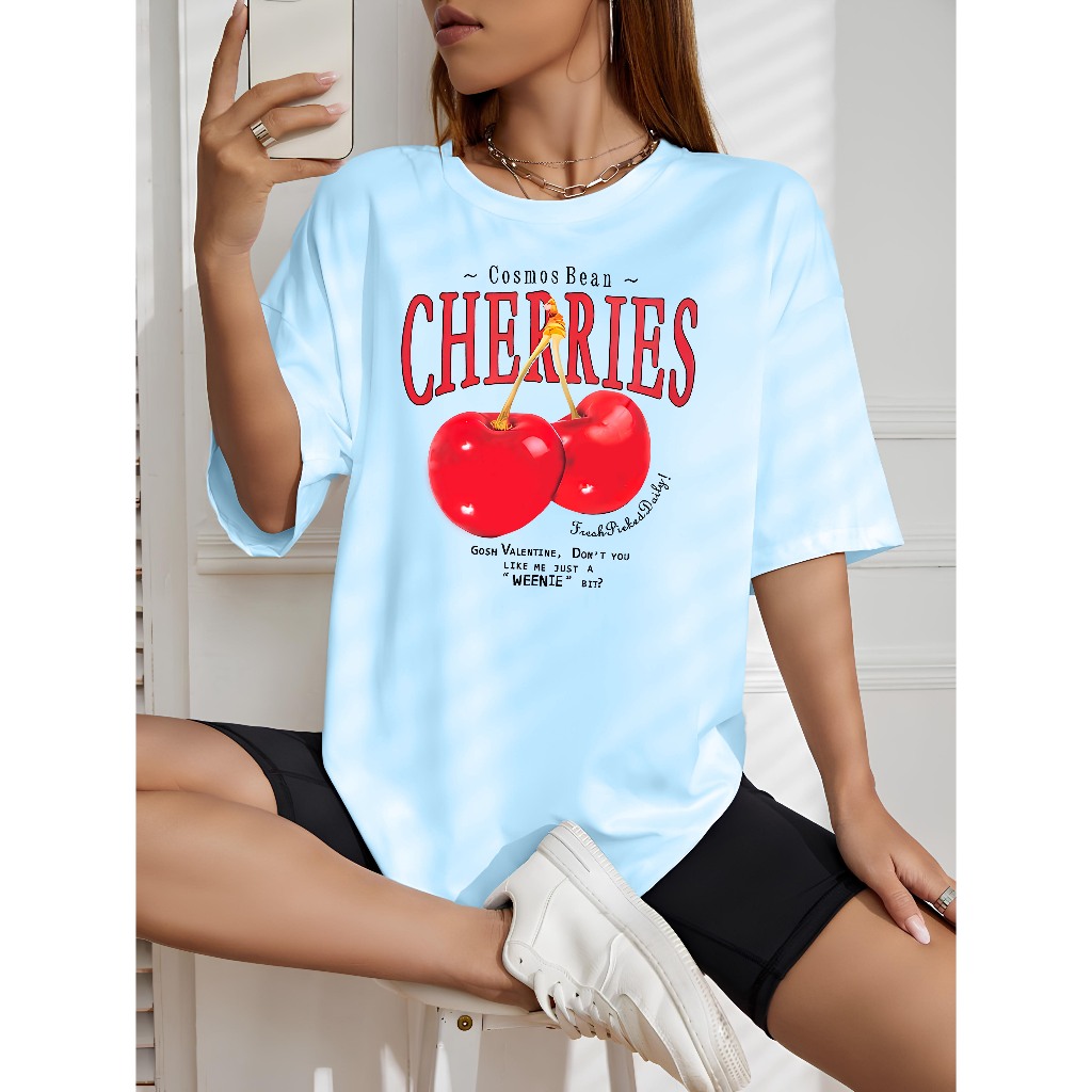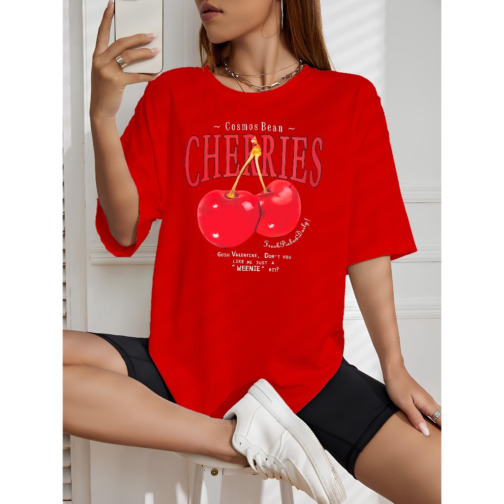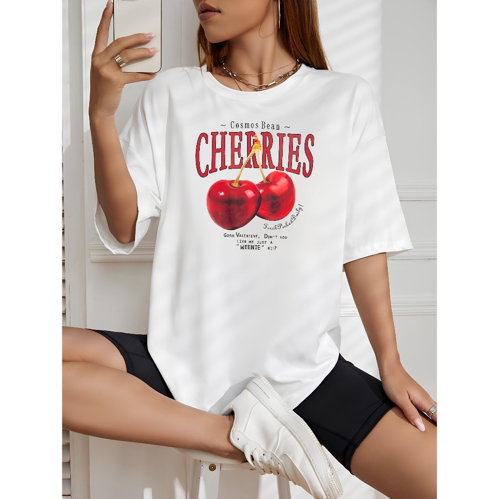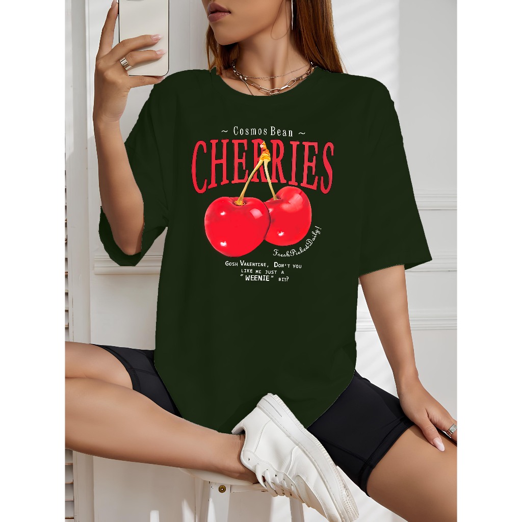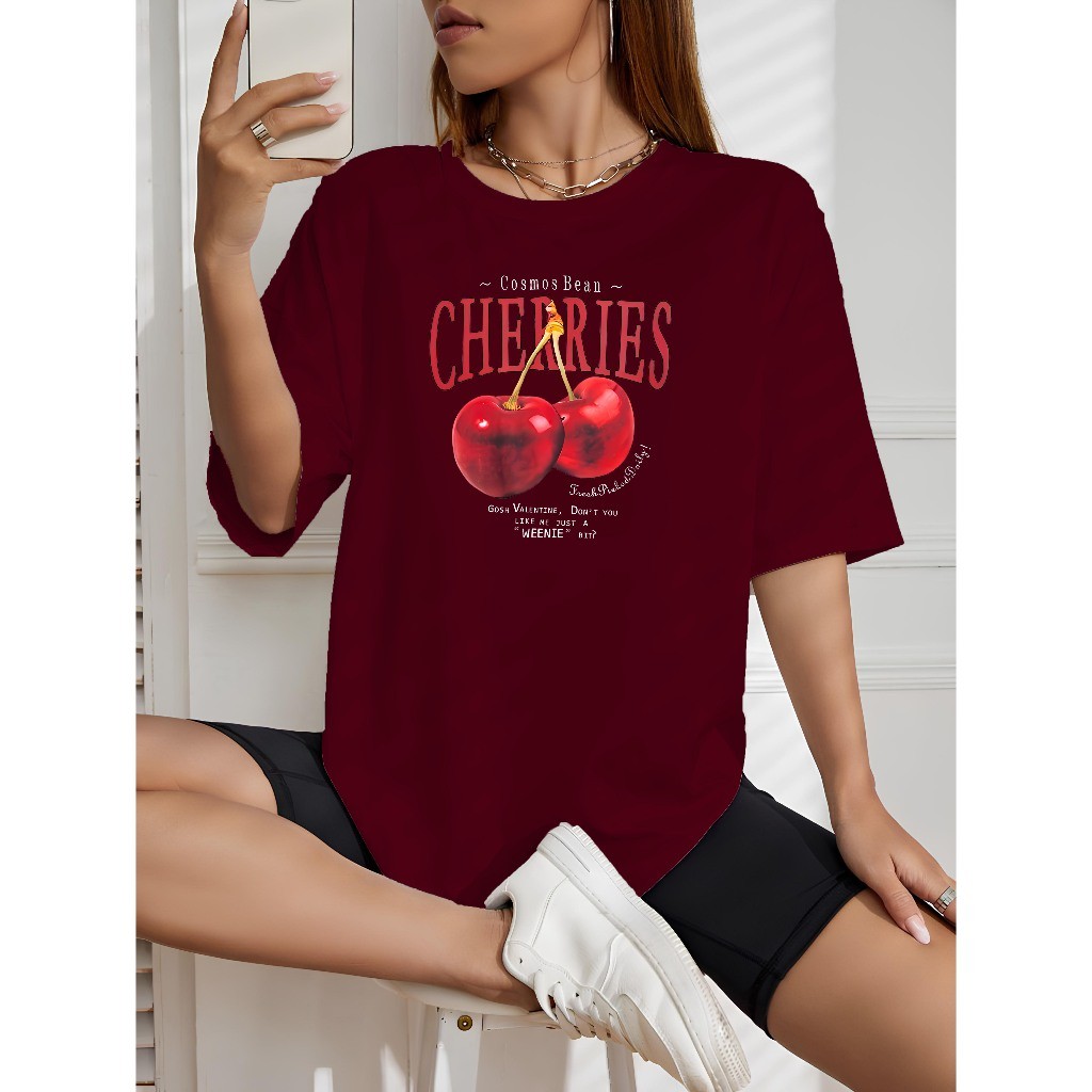 Blusa Feminina Cereja Cherries 100% Algodão Premium T-Shirt Moda Gringa Cherry Camiseta Streetwear
