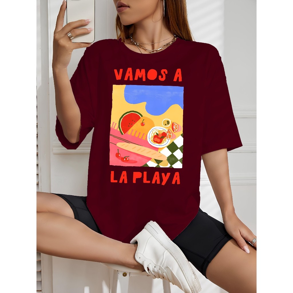 Blusa Feminina La Playa 100% Algodão Premium T-Shirt Moda Gringa Camiseta StreetWear