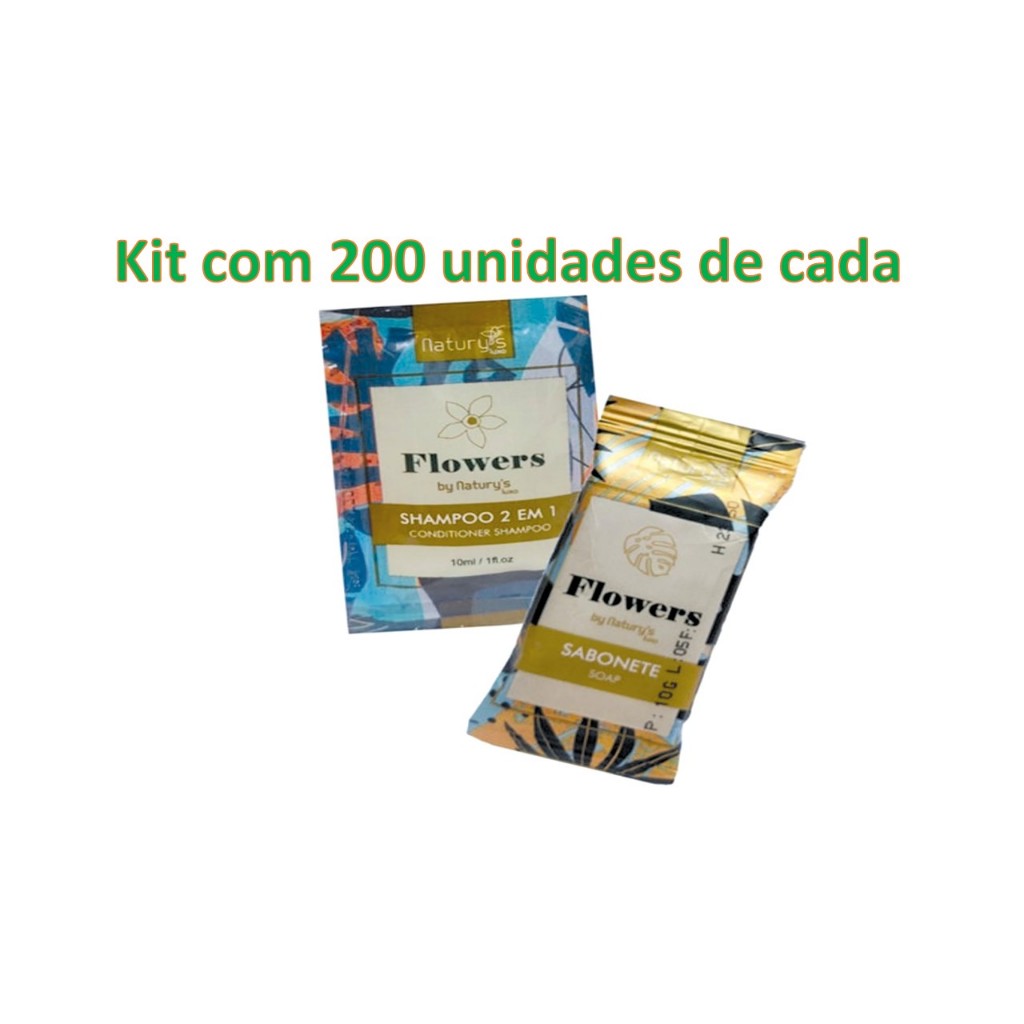 Kit mini sabonetes + mini Shampoos 2em1 Floral para Hotéis Pousadas Motéis Hostel Arbnb Spas