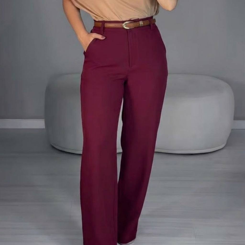 Calça Wide Leg Tecido Alfaiataria Casual Pantalona Bolso Verdadeiro Empina Bumbum Promoção