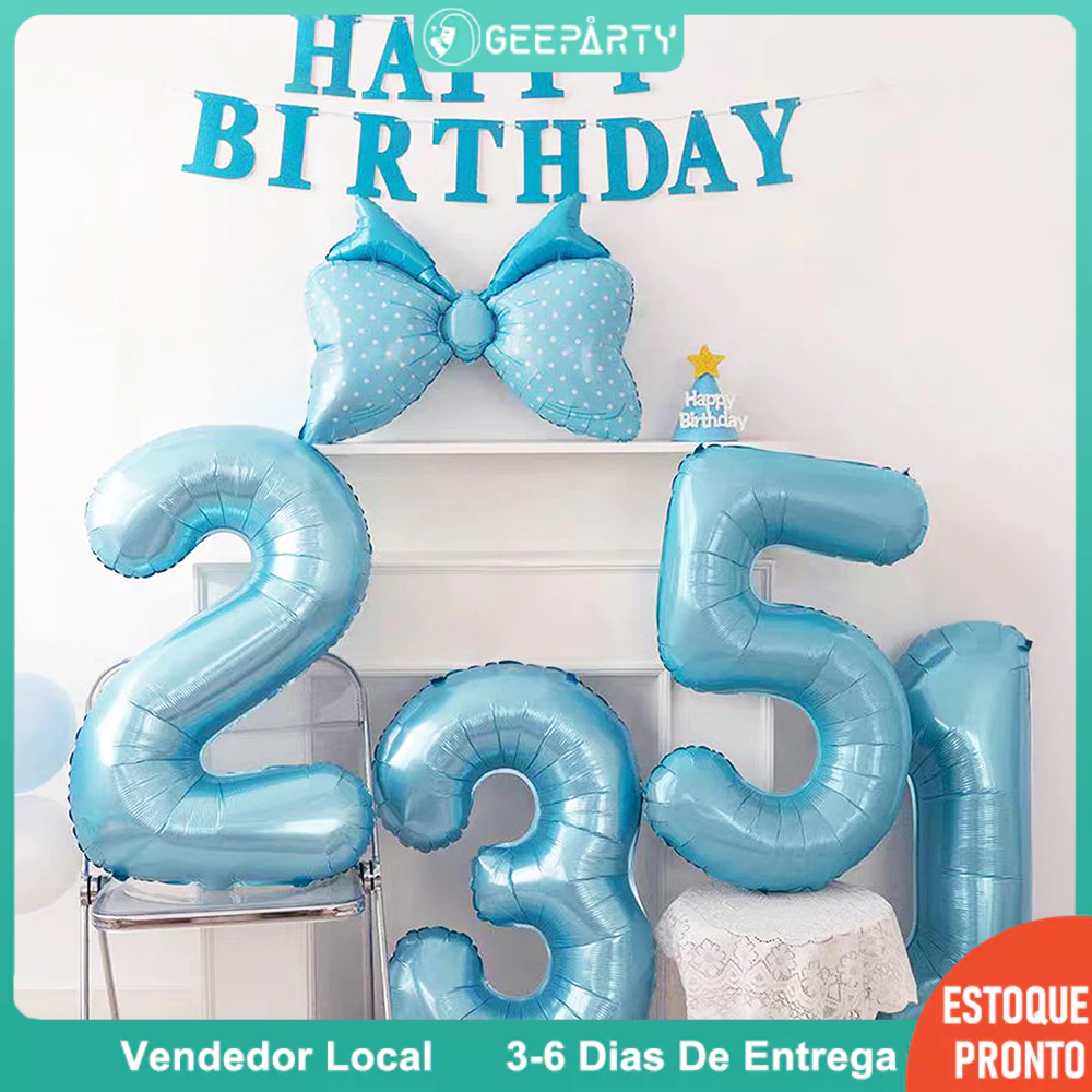 GeeParty - 80 cm Balão de Número Azul Claro (0 a 9) para Festa