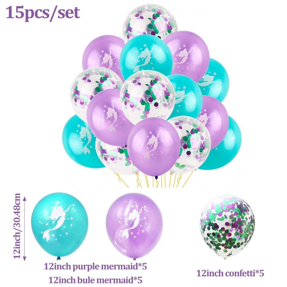 GeeParty 15/30 Peças De Balão De Látex Sereia Para Festa De Aniversário , Decorações Festivas
