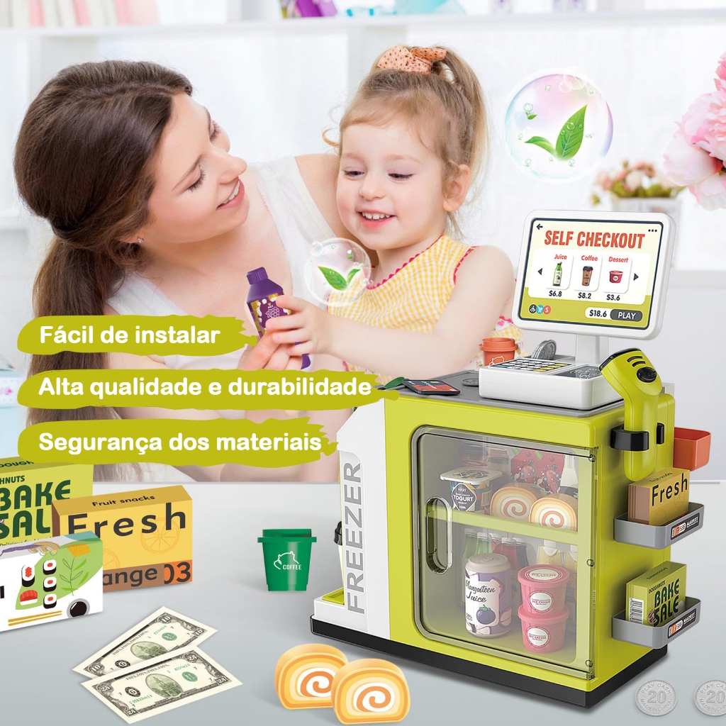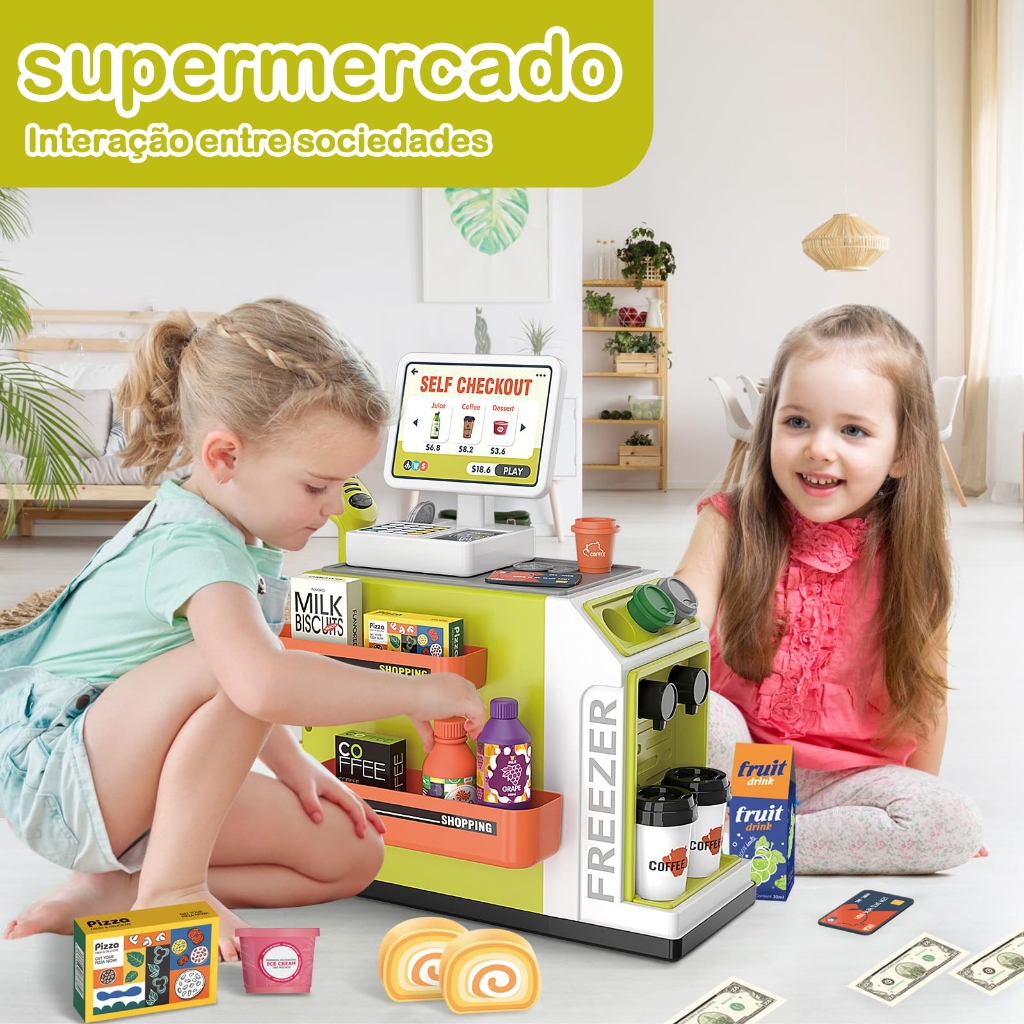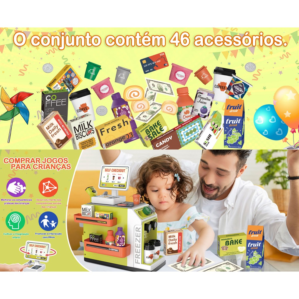 46pcs Infantil Kit caixa registradora Brinquedos Compras Casa notas de dinheiro Supermercado Caixa Iluminação Market Toy