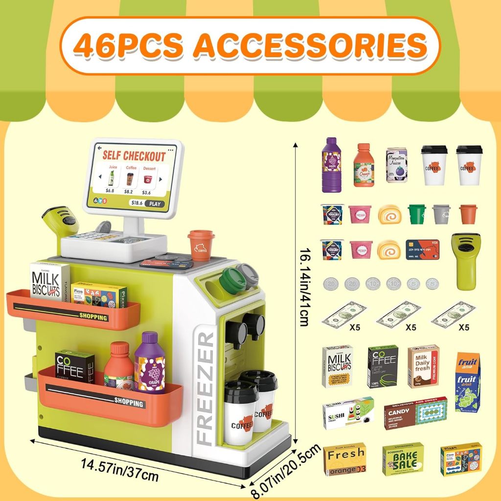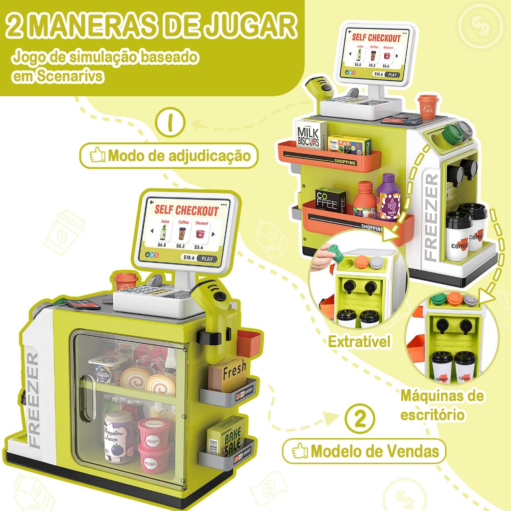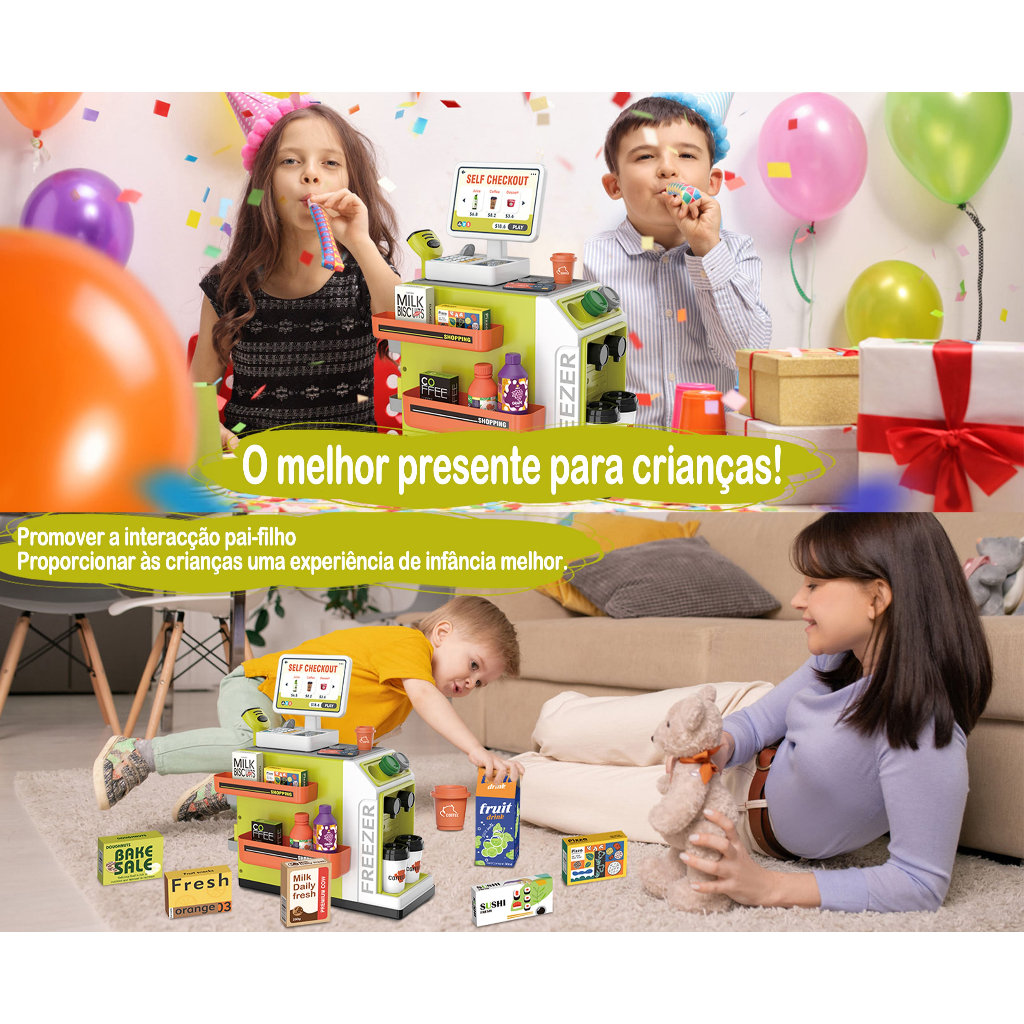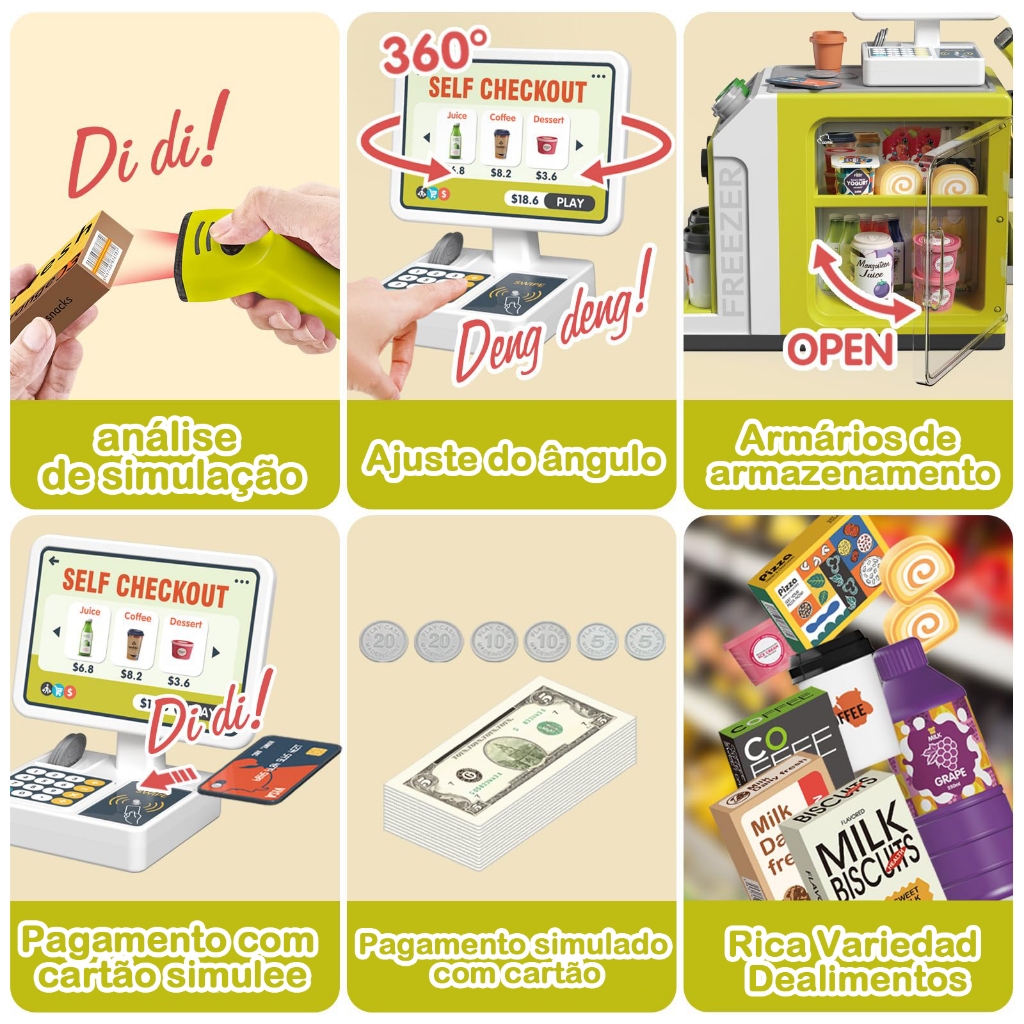 46pcs Infantil Kit caixa registradora Brinquedos Compras Casa notas de dinheiro Supermercado Caixa Iluminação Market Toy