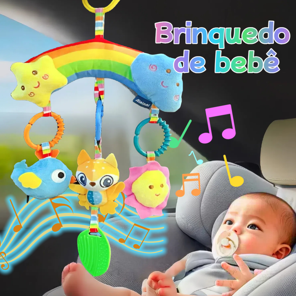 Recém Nascido Coruja ARCO IRIS/ Mobile Centopeia para Carrinho de bebê Brinquedo Sensorial Calmante Berço Com Chocalho