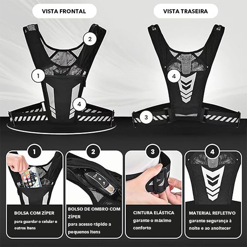 Colete refletivo com bolsa para garrafa de água e bolso para celular Esportes, ciclismo, corrida, mochila de segurança