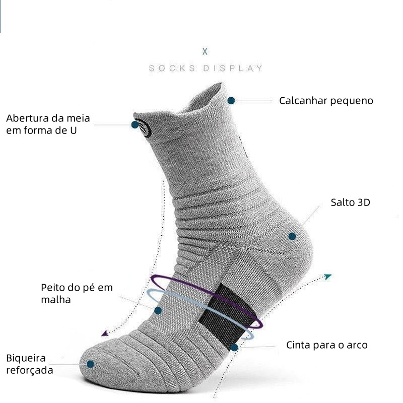 Anti-odor,anti-suor,meias esportivas espessas/anti-deslizantes de meias de algodão correndo basquete