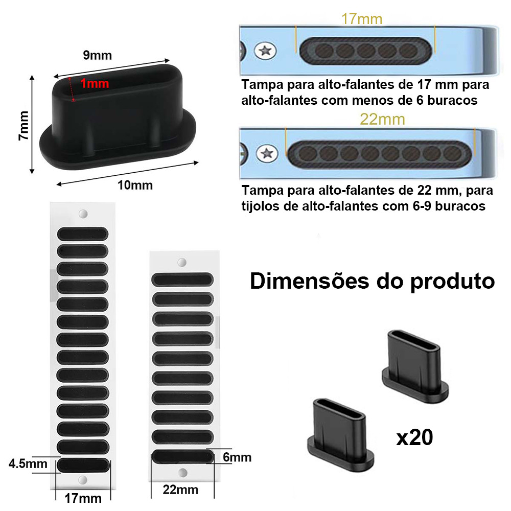 Kit 22peças Protetor de entrada Tipo C anti poeira Tampa proteção celular e notebook Preto