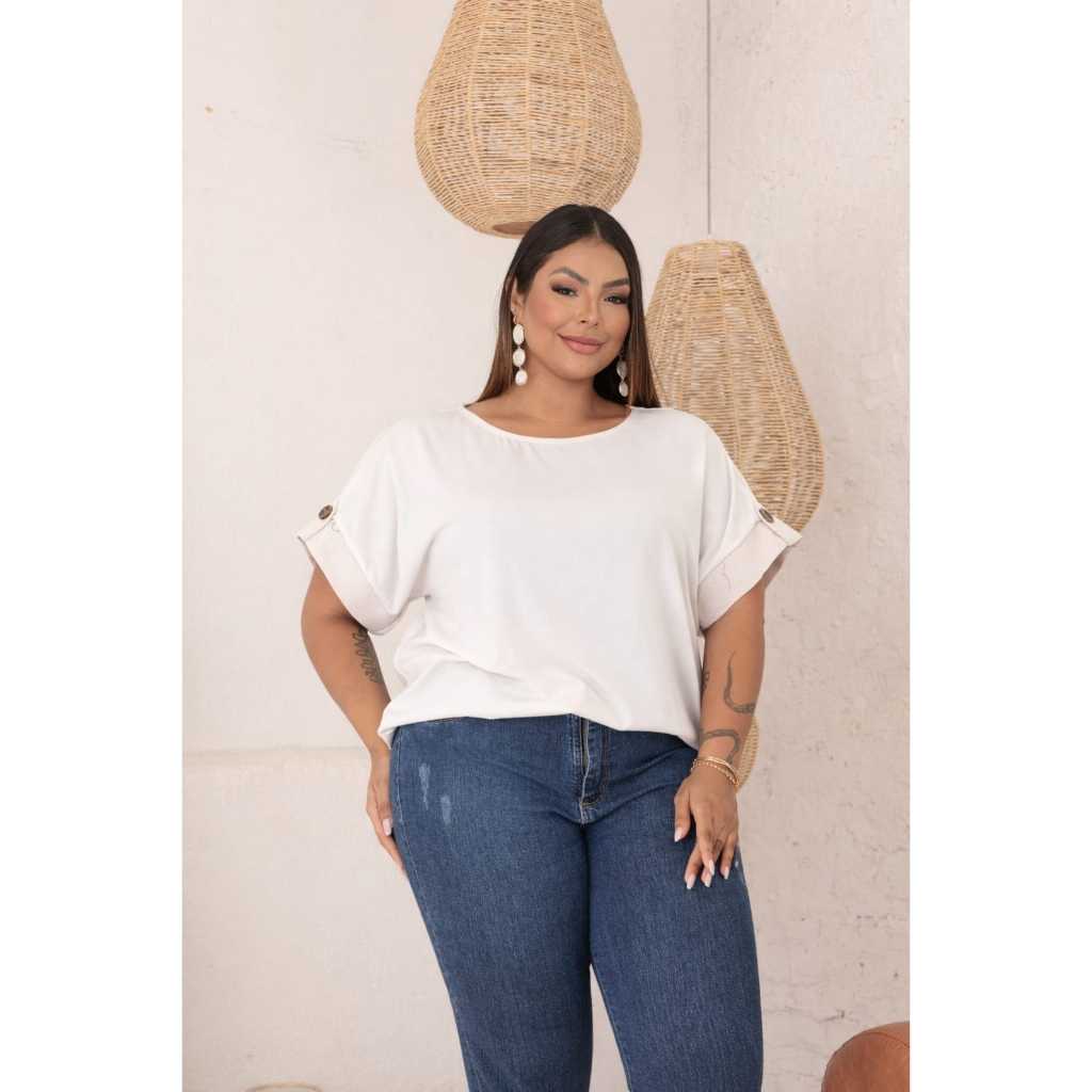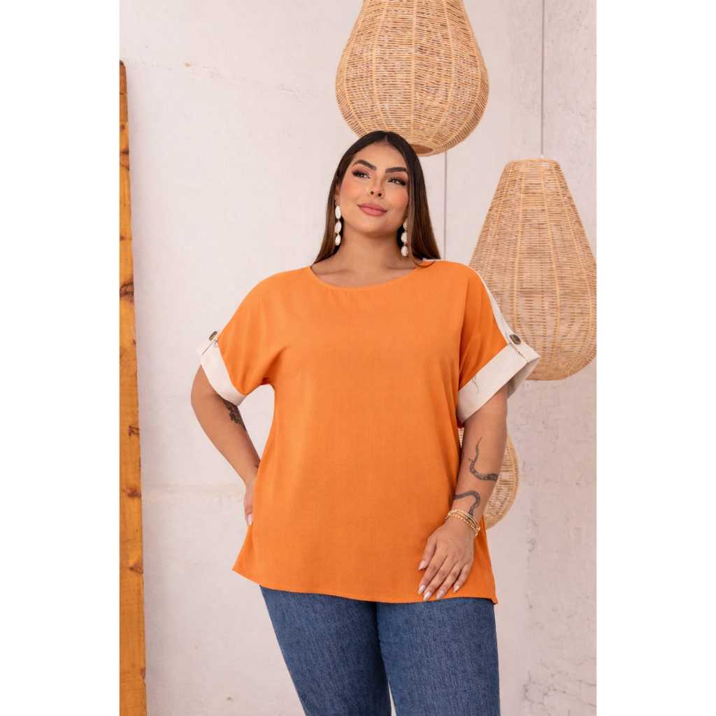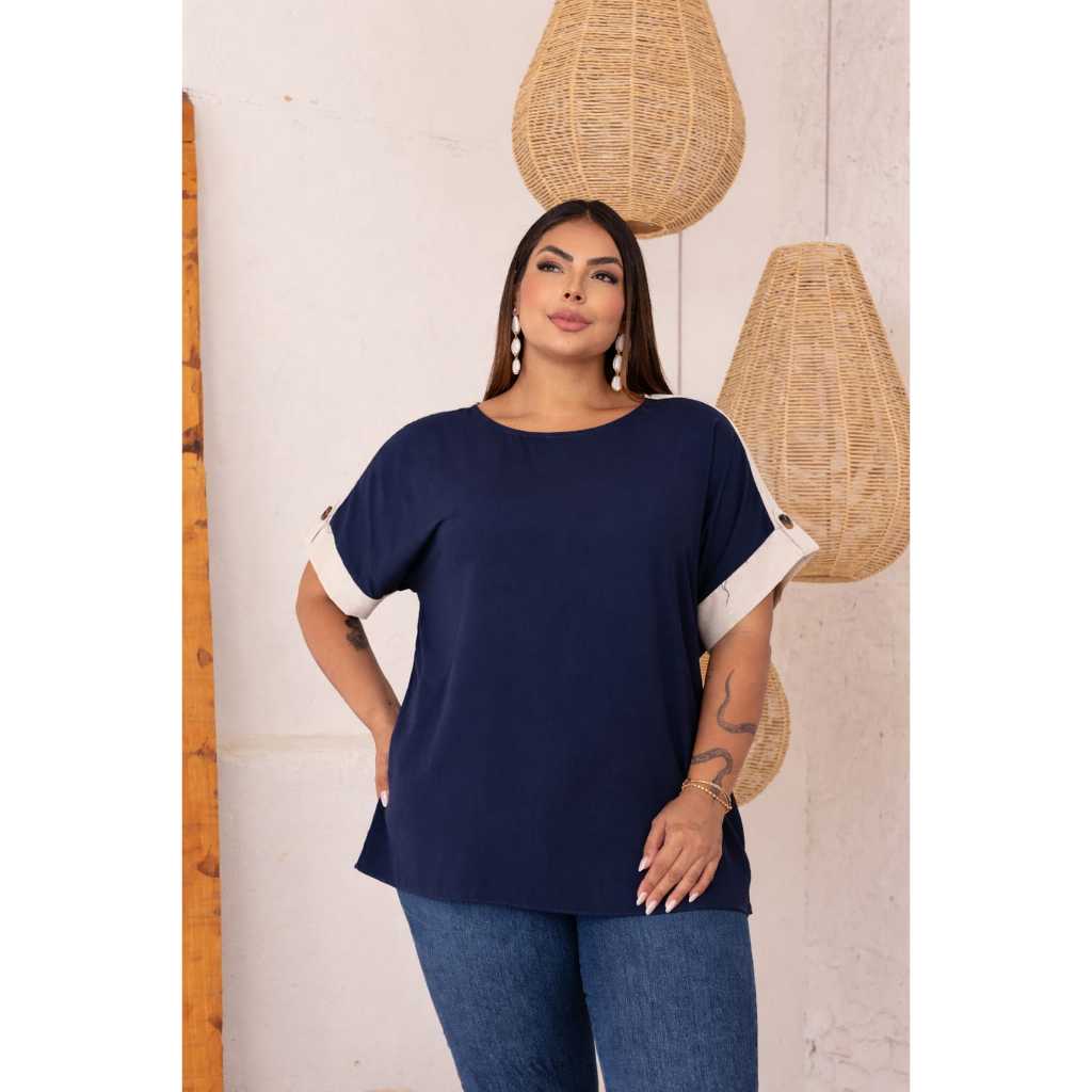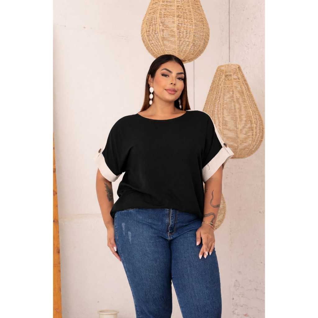 Blusa Feminina Plus Size Viscolinho com Linho no Ombro e Manga de Botão Social Casual Chic G1 G2 G3