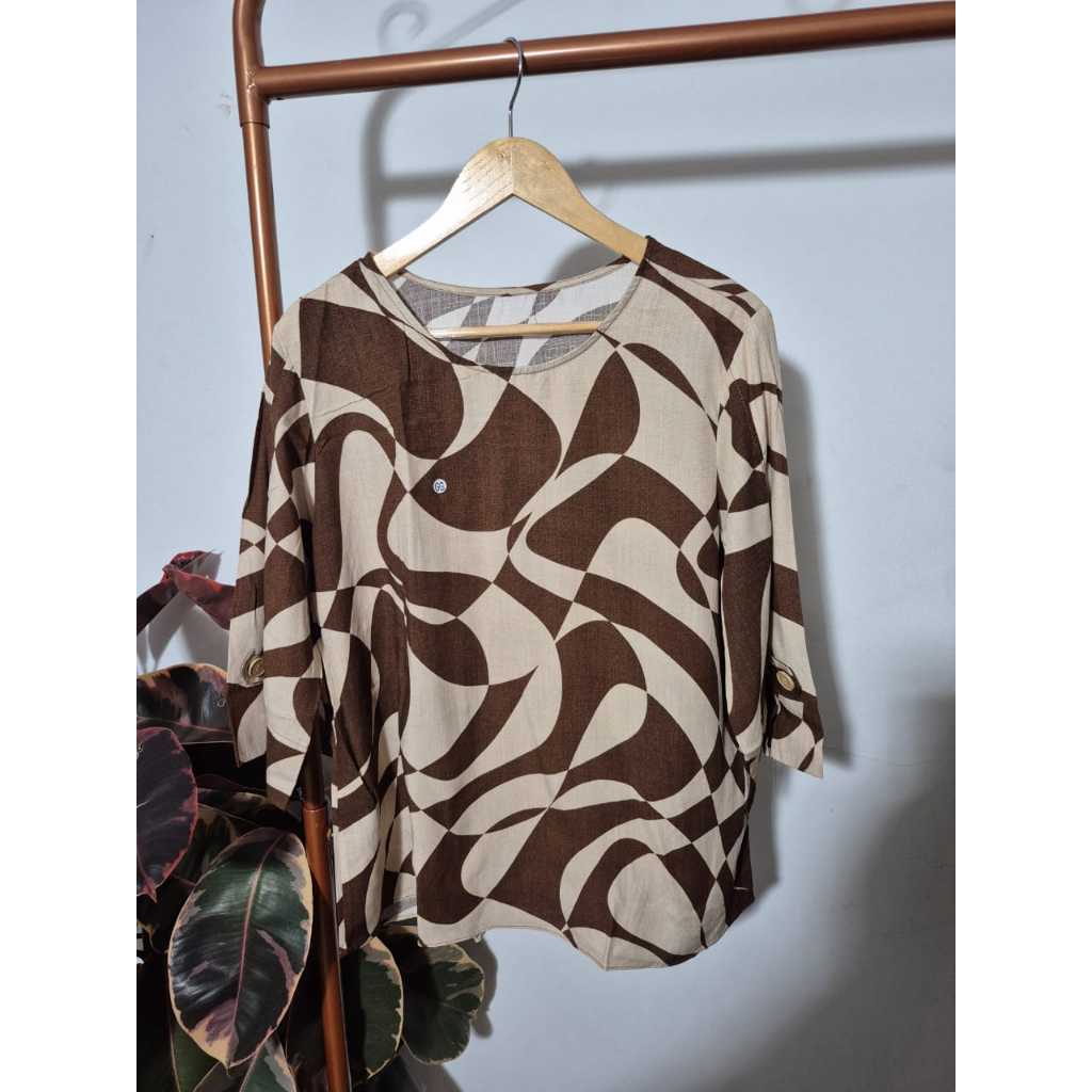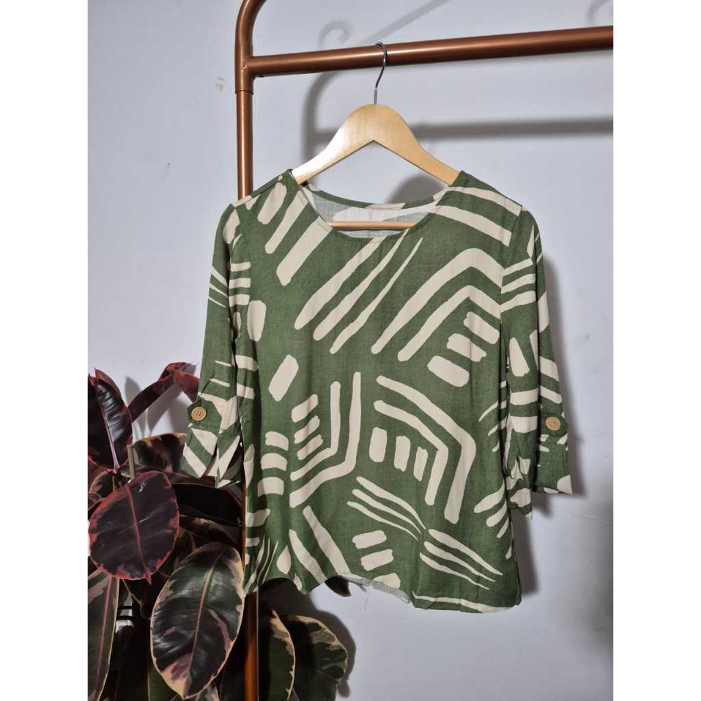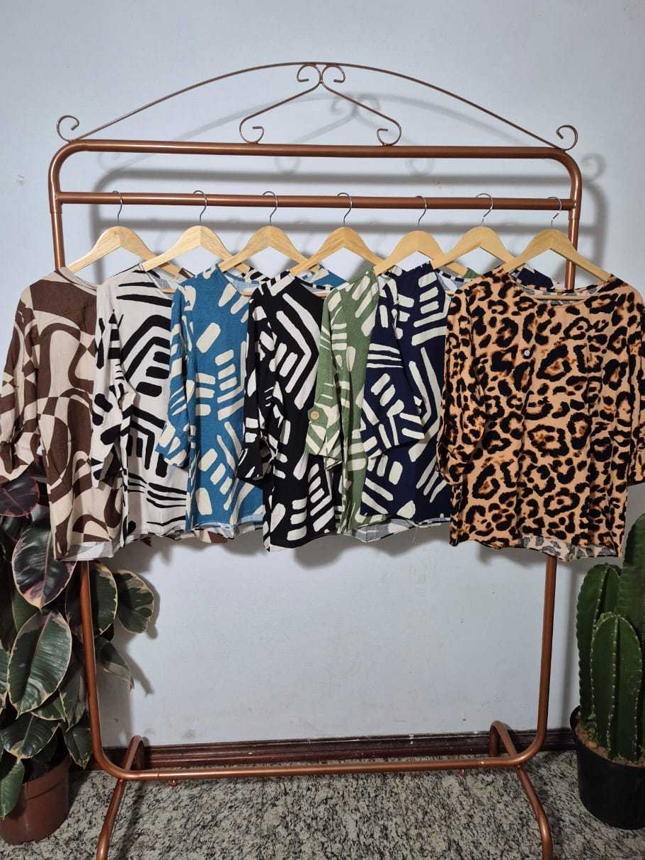 Blusa Feminina Estampada Manga 3/4 Detalhe Botão Elegante Tendência Blogueira Verão