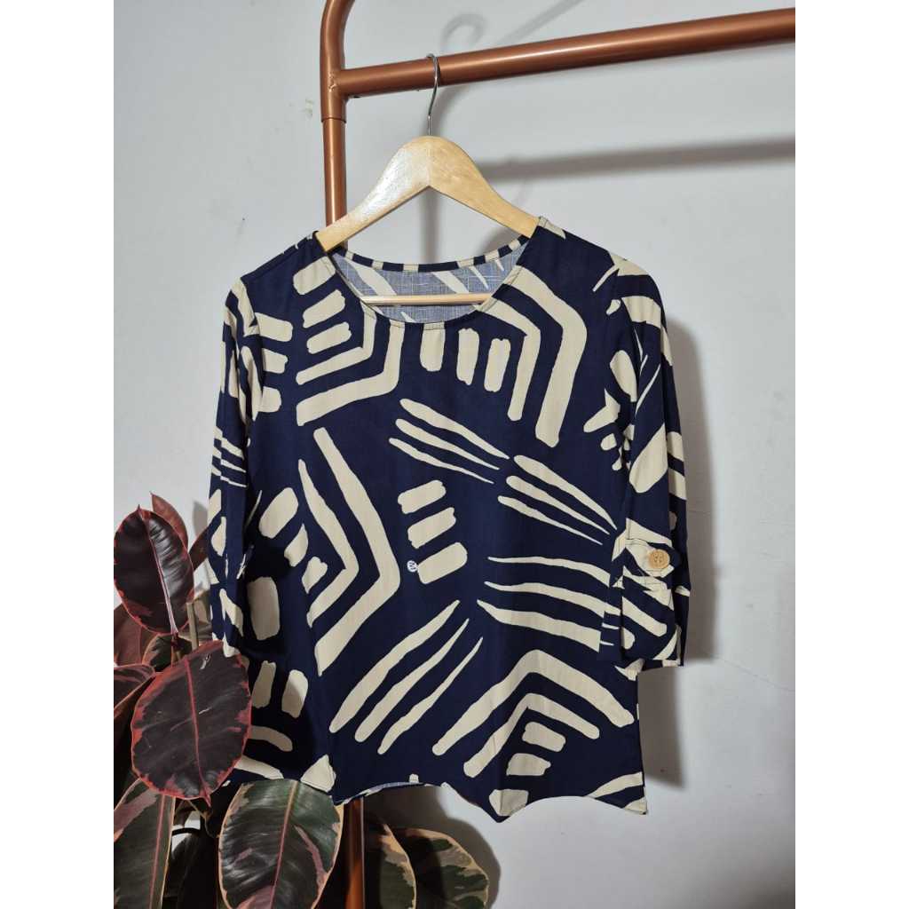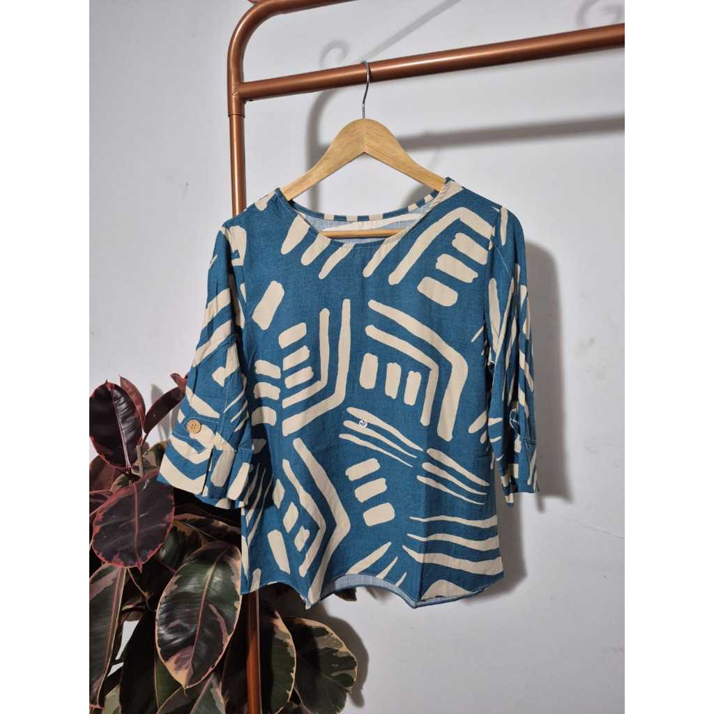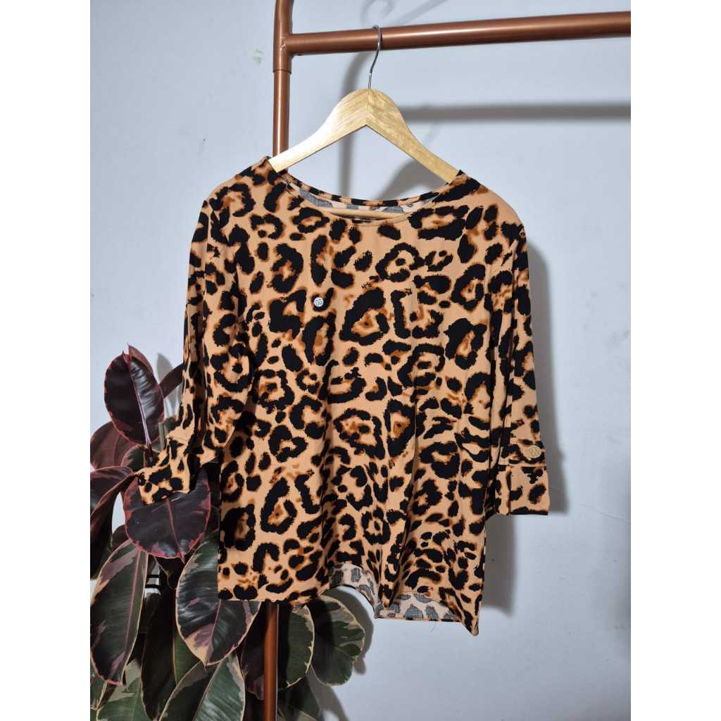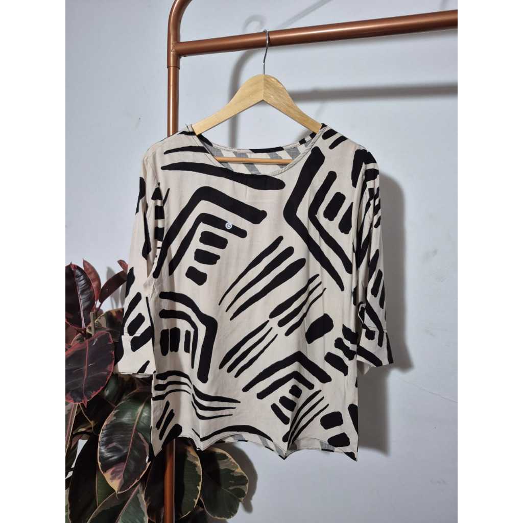 Blusa Feminina Estampada Manga 3/4 Detalhe Botão Elegante Tendência Blogueira Verão
