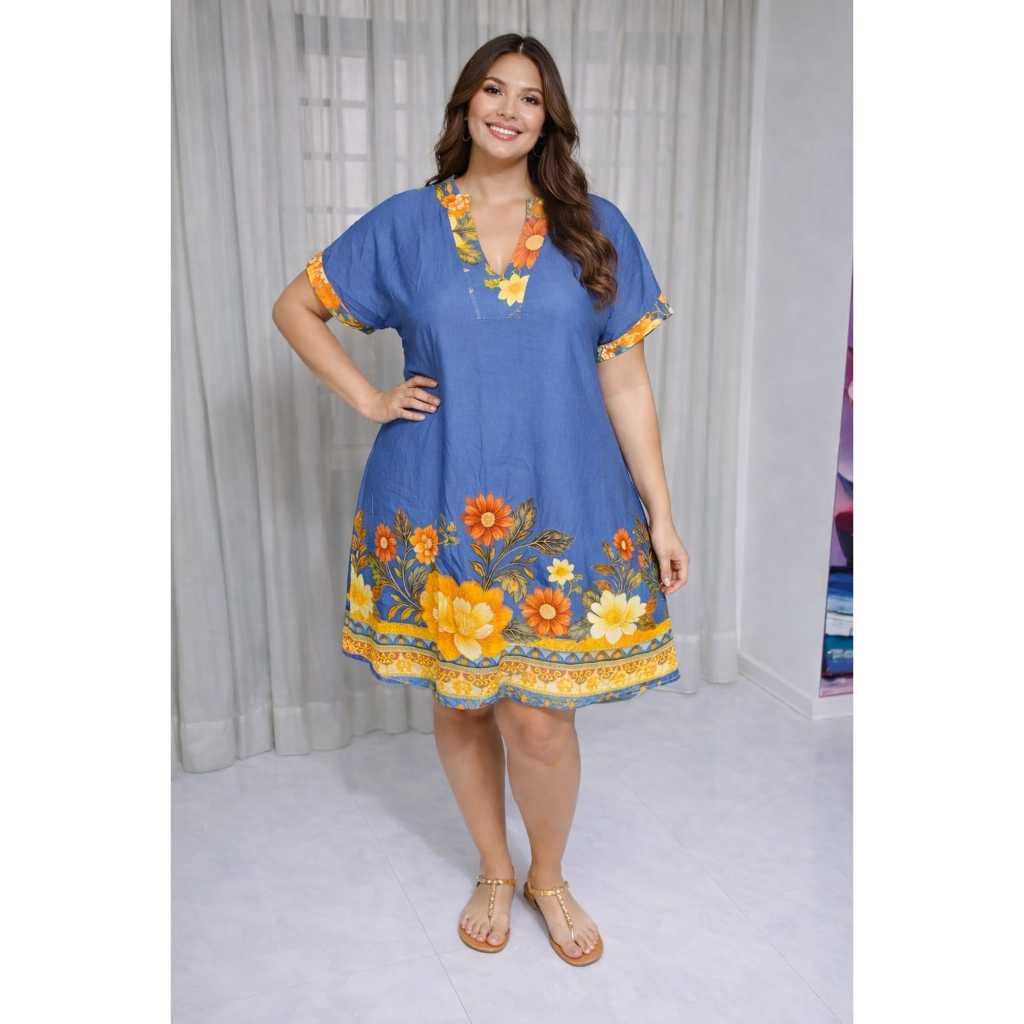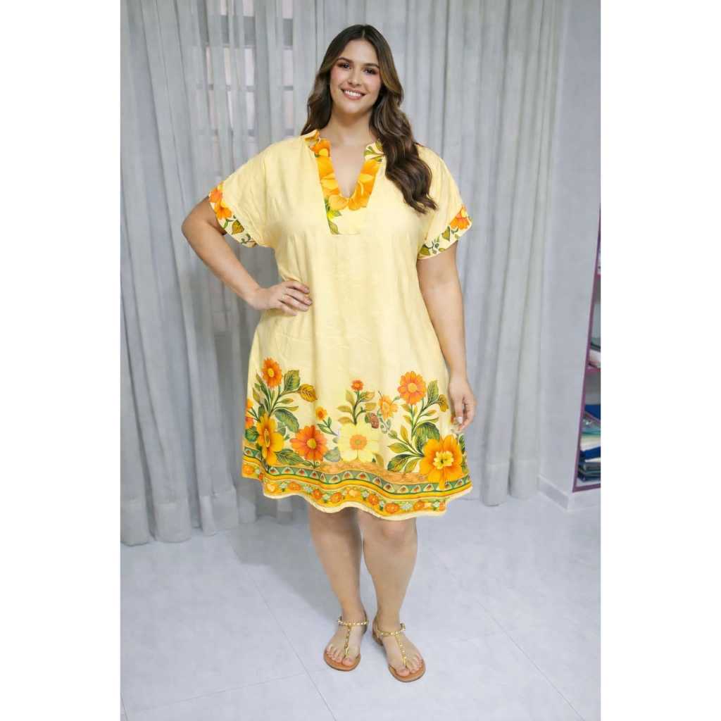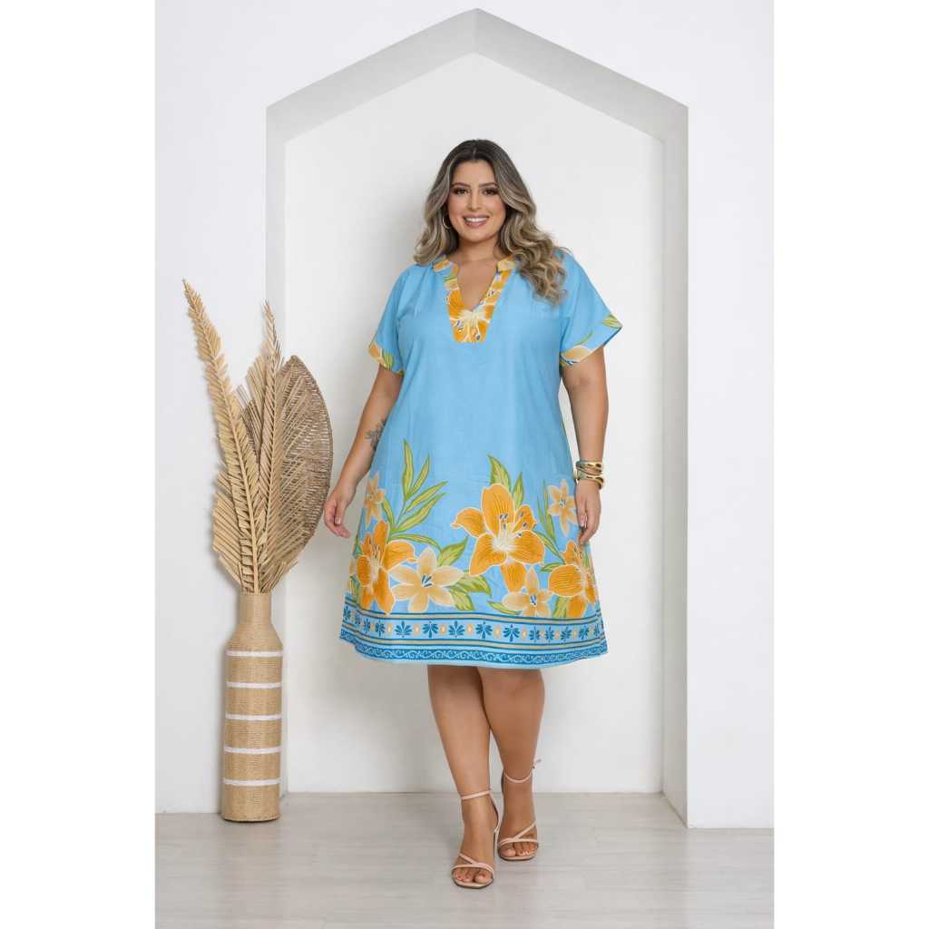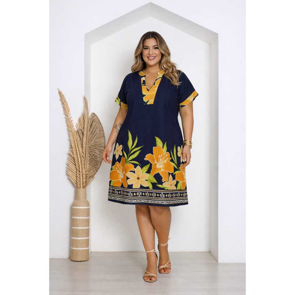 Vestido Chemise Feminina Plus Size Estampado