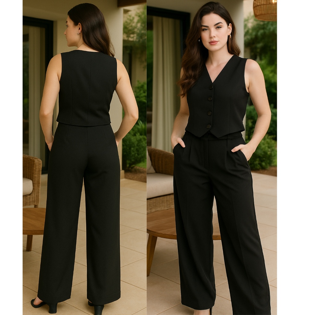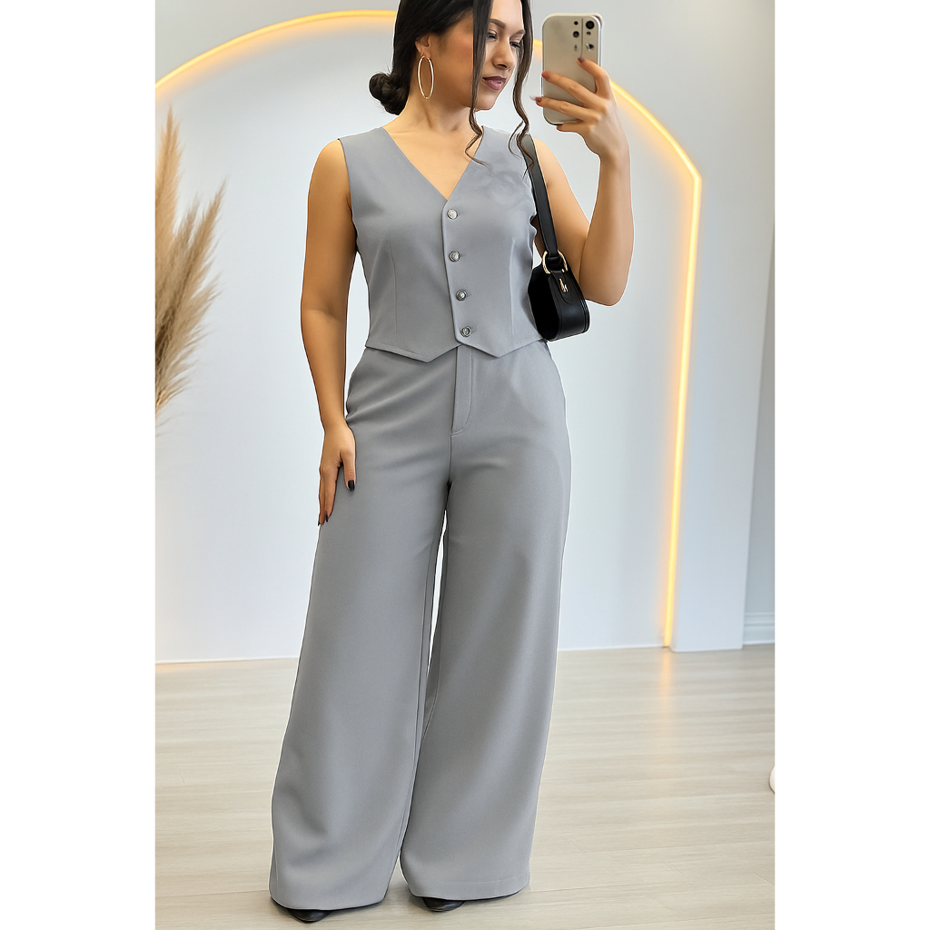 CONJUNTO ABIGAIL COLETE E CALÇA ESTILOSO E VERSATIL EN CORE DE VEÃO