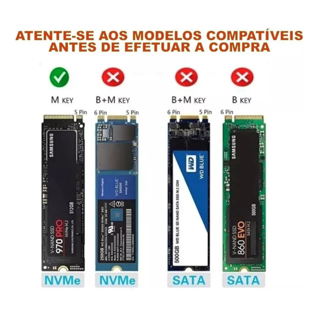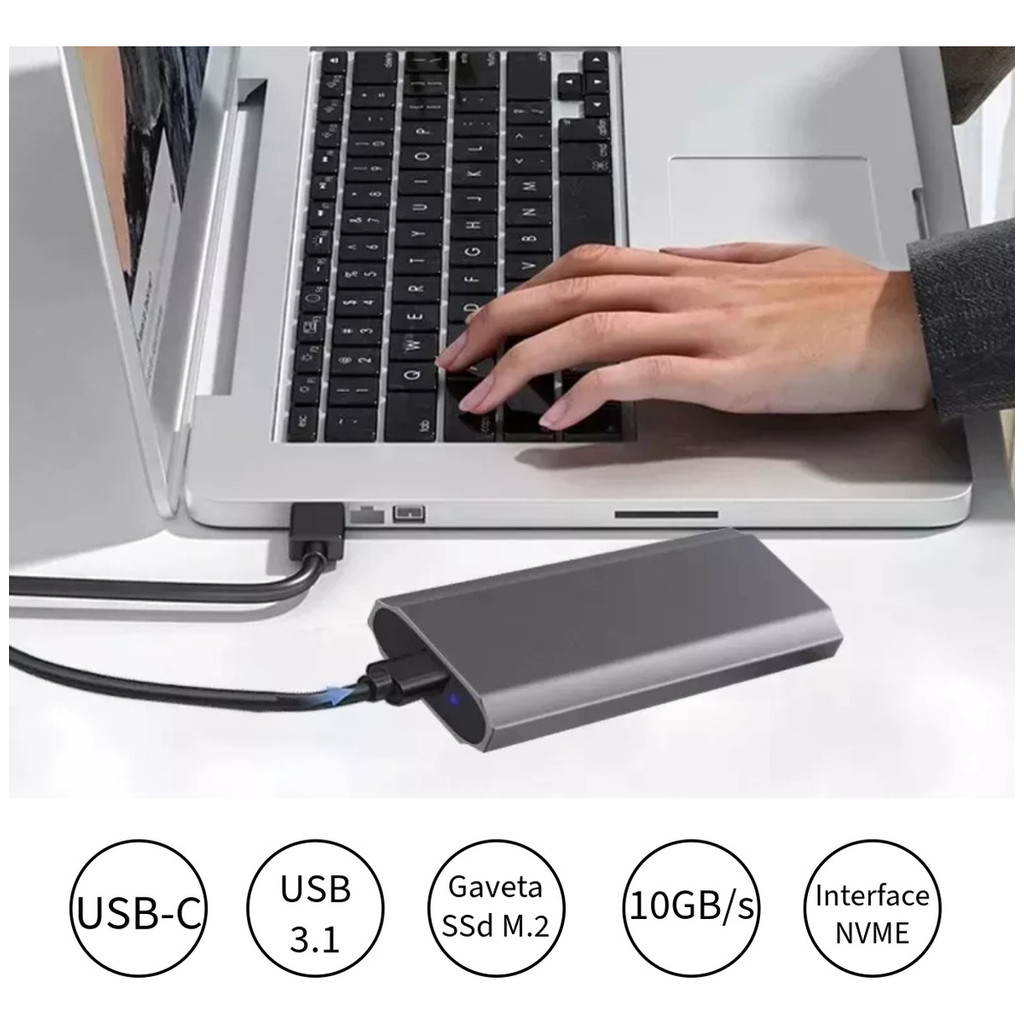 Case Gaveta SSd M.2 Nvme 2230 a 2280 USB 3.1 e USB-C 10GB/s