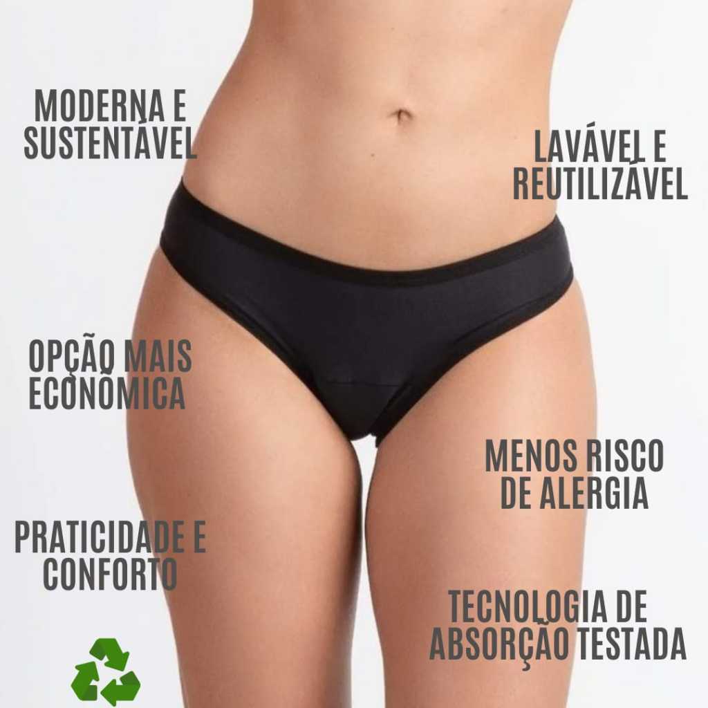kit 4 Calcinha Absorvente Menstrual Feminina Reutilizável e Incontinência Urinária Leve