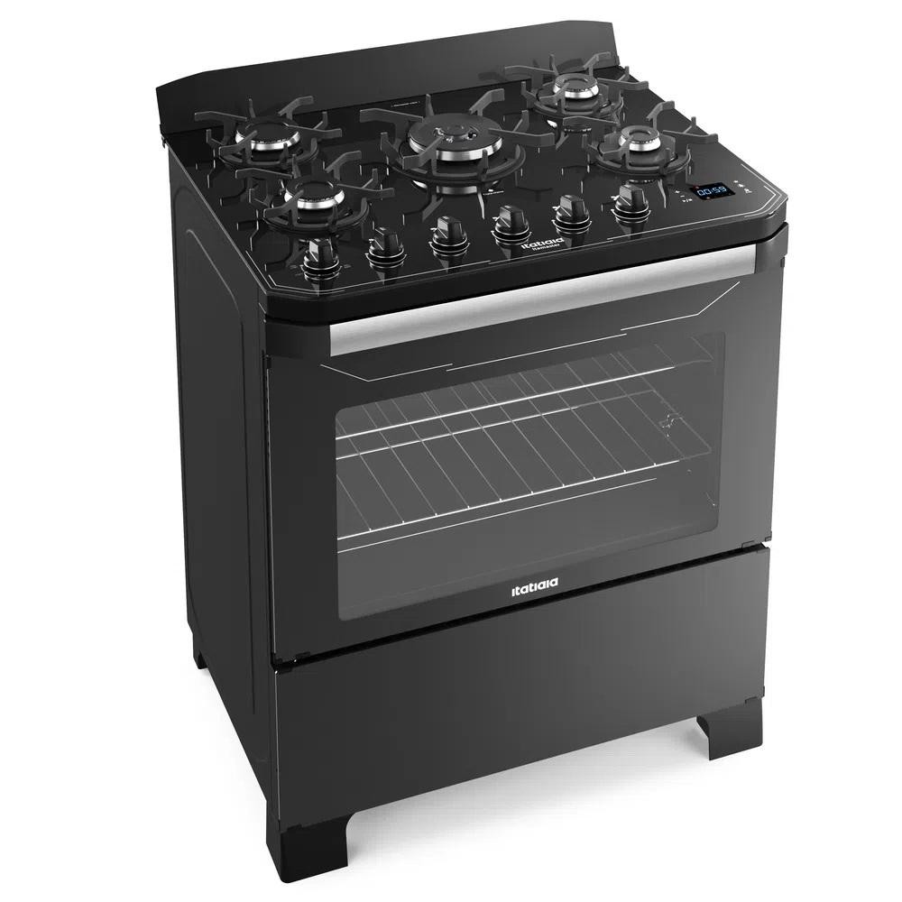Fogão Itatiaia 5 Bocas Digital Itamaster Tripla Chama Preto - Bivolt