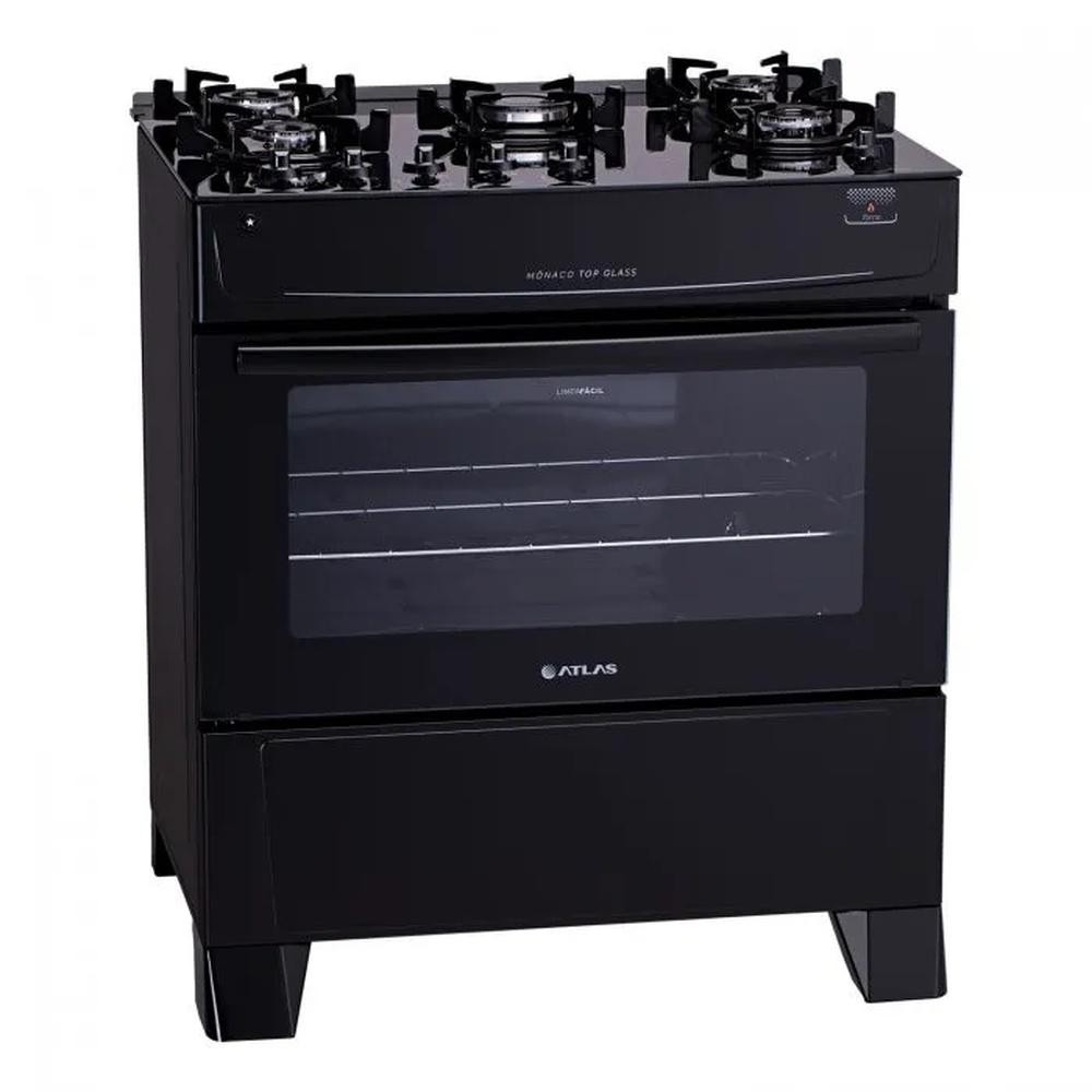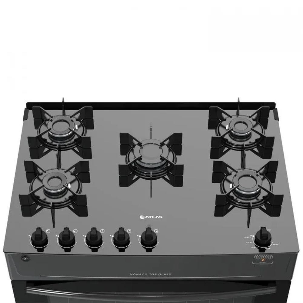 Fogão a Gas 5 Bocas Monaco Top Glass Preto - Bivolt