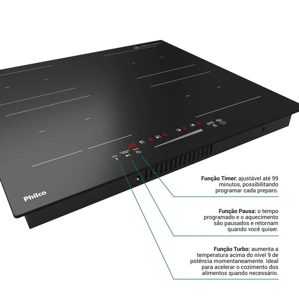 Cooktop De Indução Philco 4 bocas Função Turbo Preto PCTQ1 - 220V