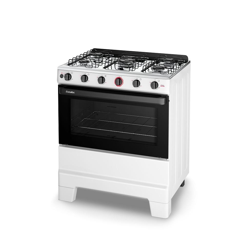Fogão Esmaltec 5 Bocas Ideal Super Mesa de Aço Inox Branco F5IAB - Bivolt
