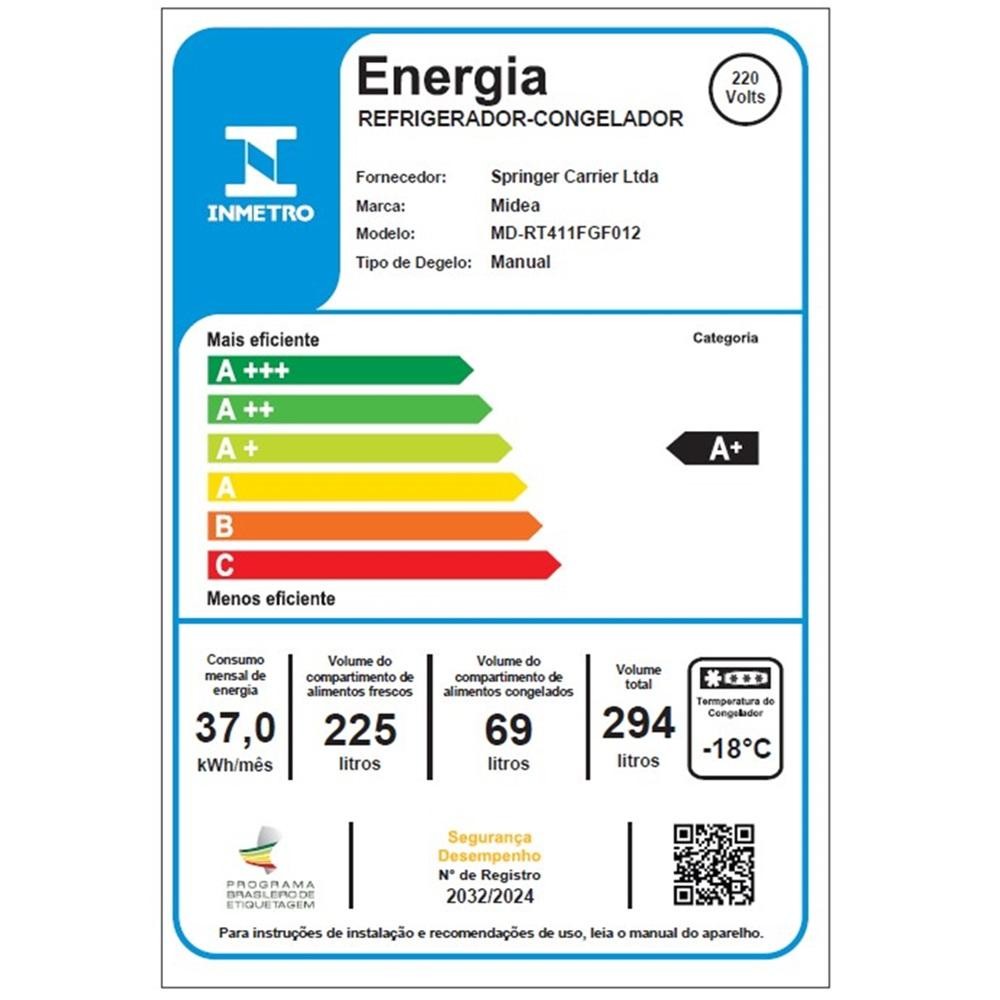 Geladeira Midea Cycle Defrost Duplex 294 Litros Branca MD-RT411 220V