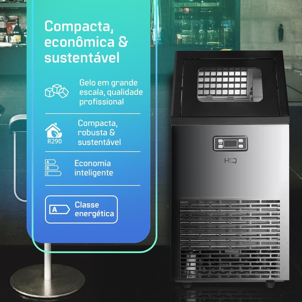 Máquina de Gelo Profissional HQ 45kg Turbo Ice Preta e Inox HQ-HQMGI45 220V