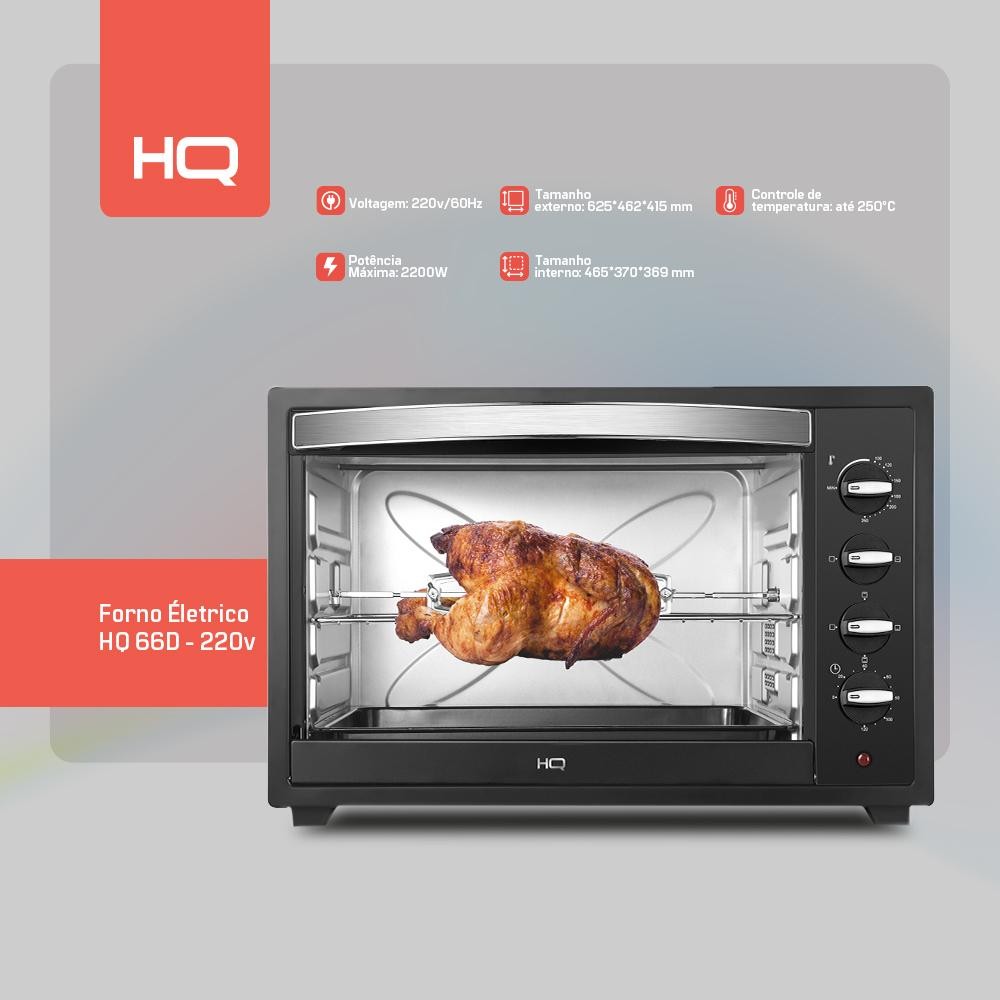 Forno Elétrico HQ 66 Litros HQ66D 2200W Preto 220V