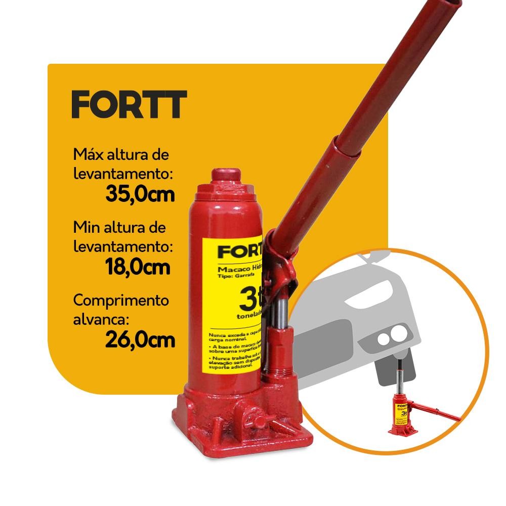 Macaco Hidráulico tipo Garrafa 3 Ton Fortt Vermelho - MHG001-3ton