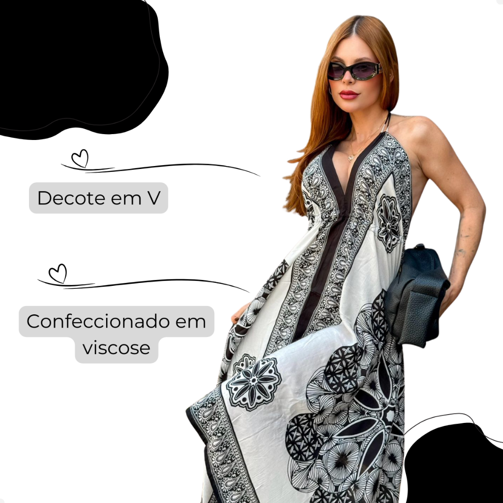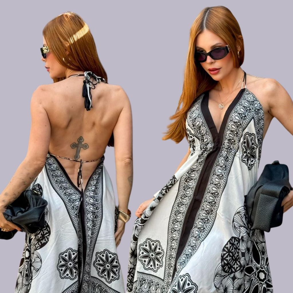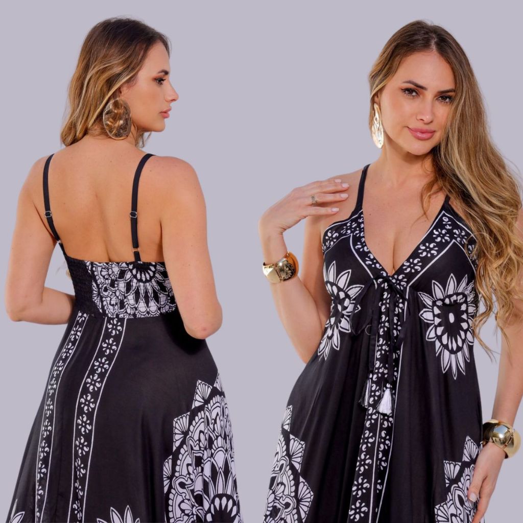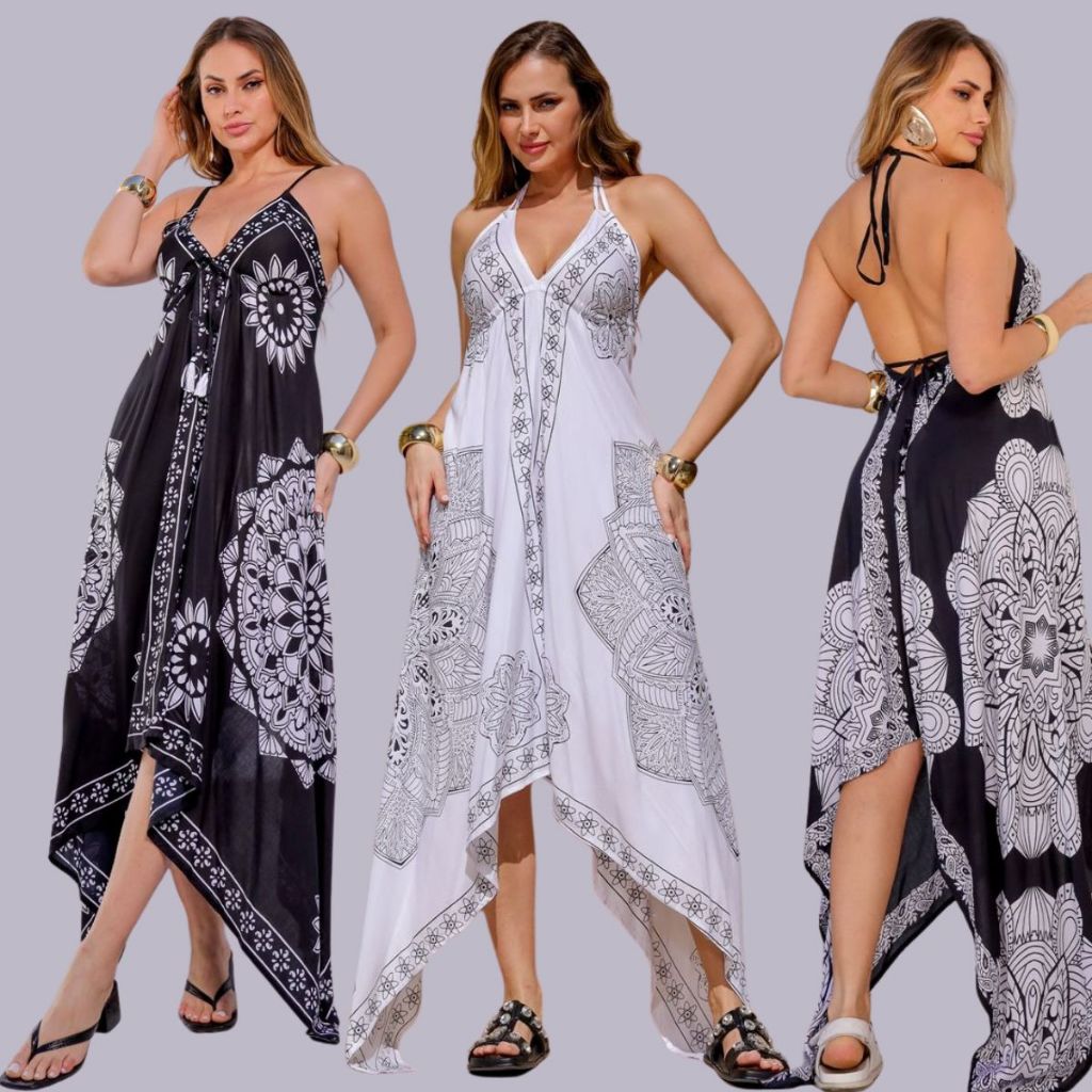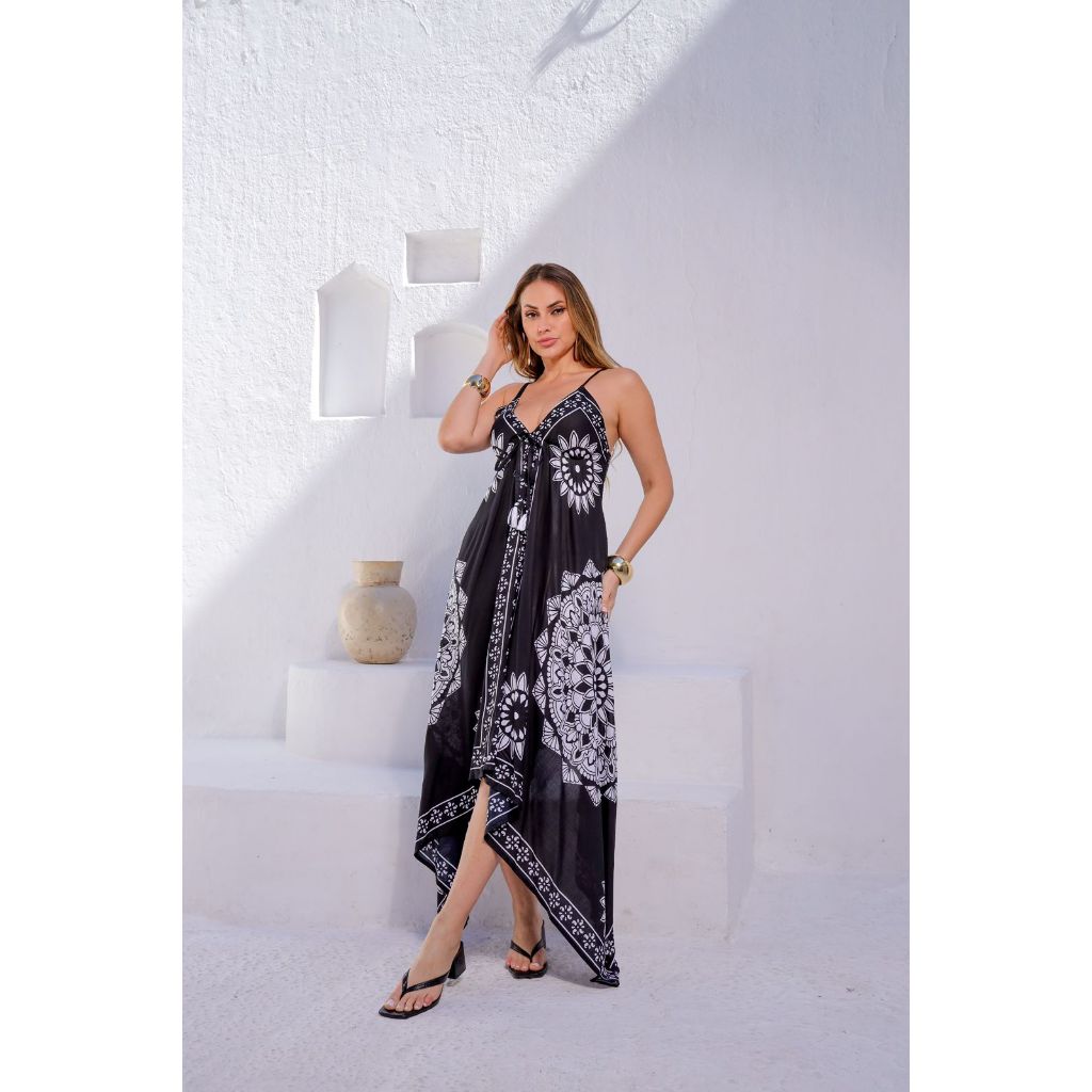 Vestido Lenço Indiano Longo Alcinha Ponta Chique Estampado