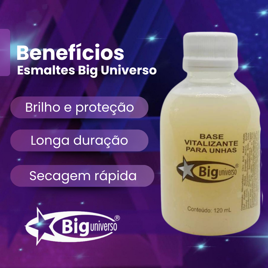 Esmalte Cobertura Brilhante e Base Vitalizante Big Universo 120ml Manicure Uso Profissional