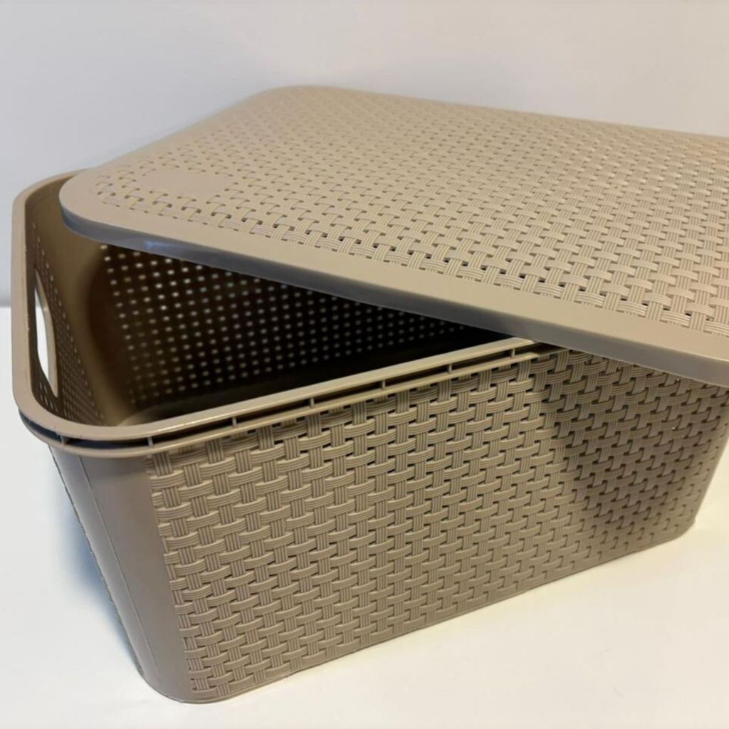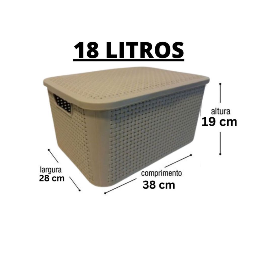 KIT 6 Cesto Caixa Organizadora Rattan 18 Litros Com Tampa Resistente