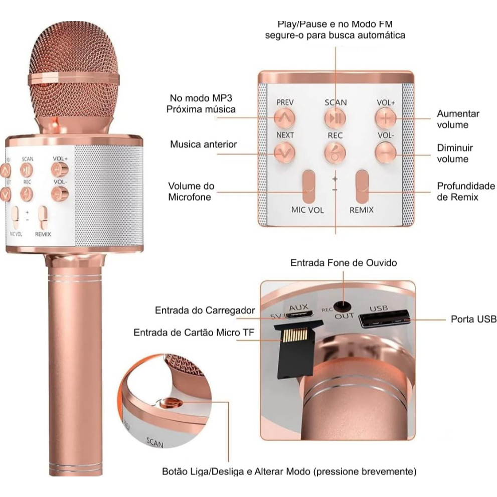 Microfone Sem Fio Youtuber Bluetooth Infantil Reporter