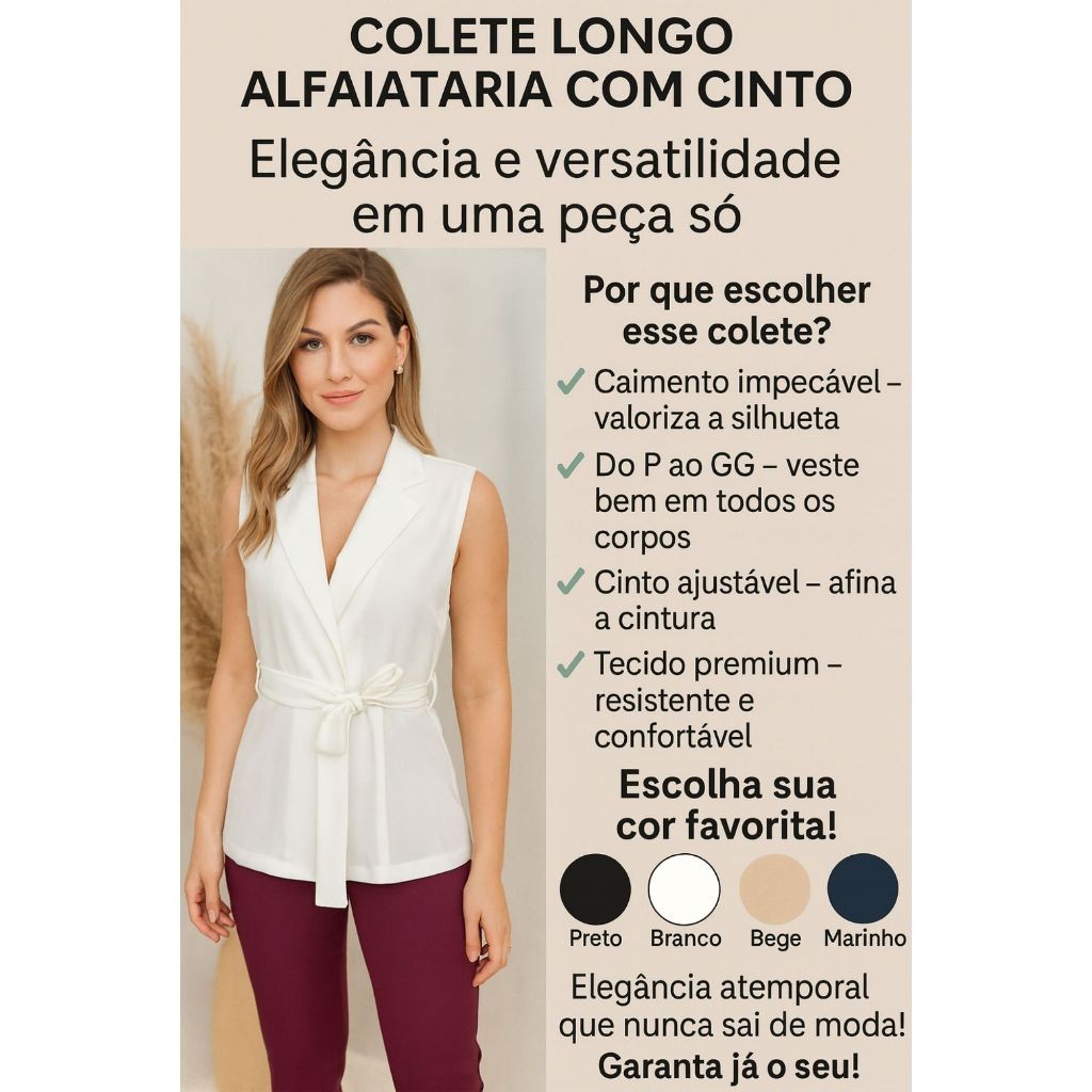 Colete Amarração Com Cinto Alfaiataria Feminino Social Elegante
